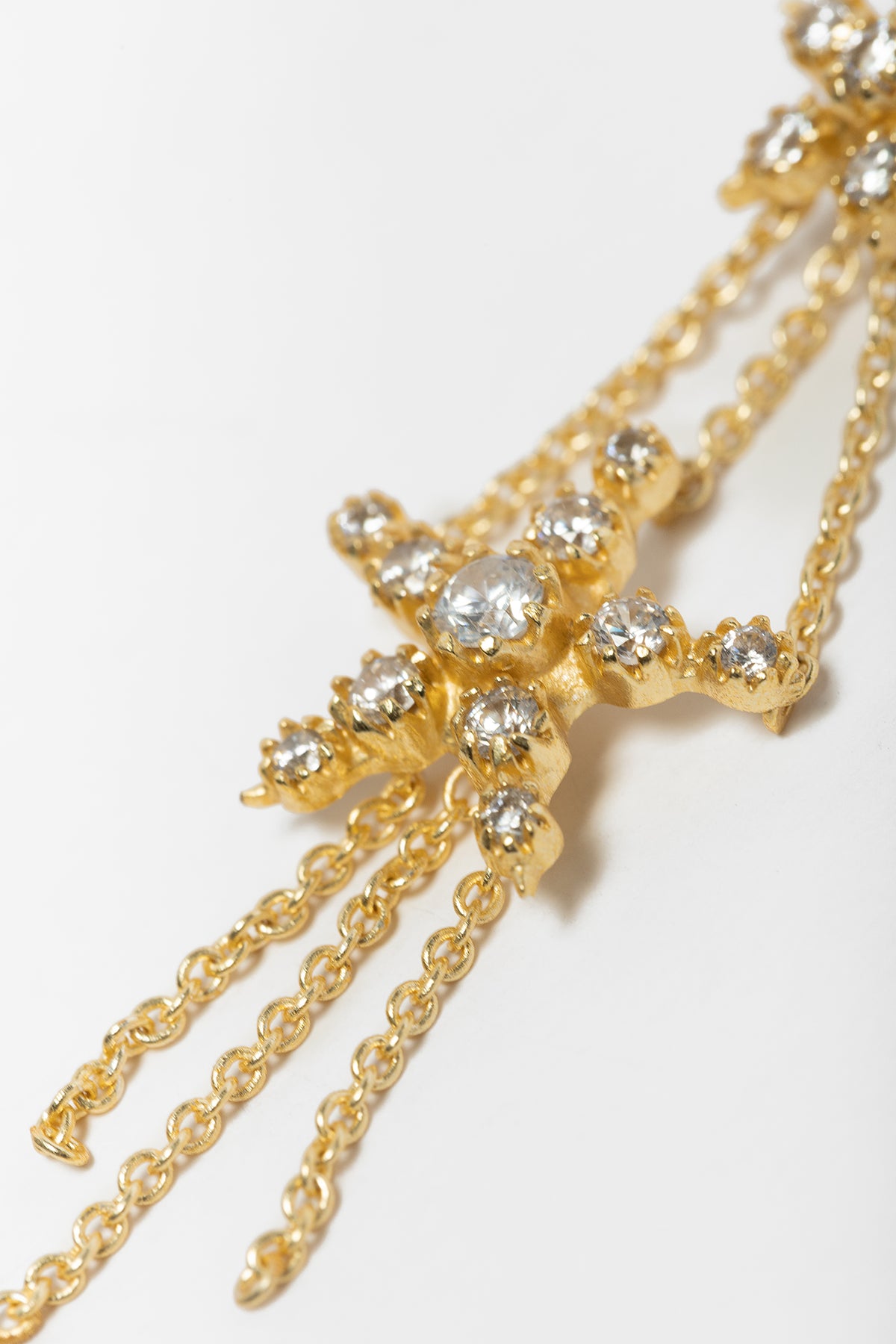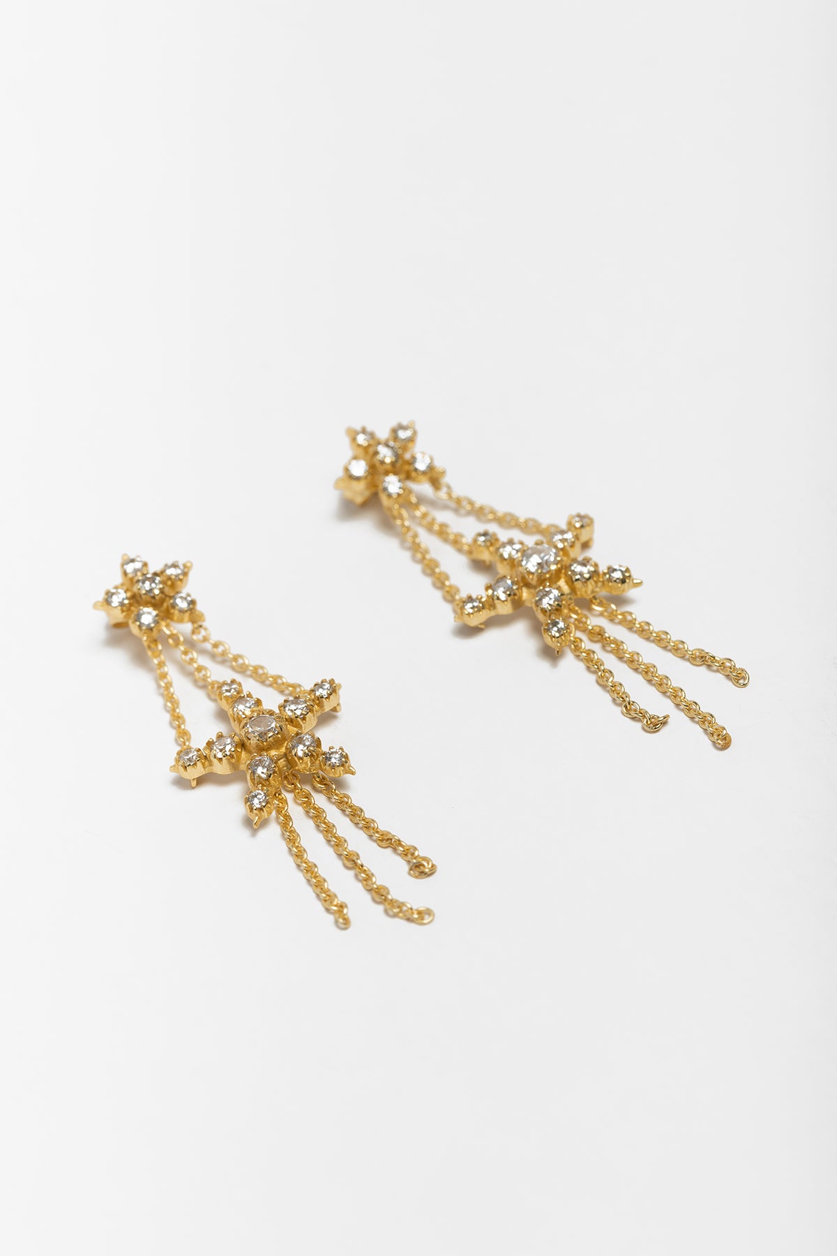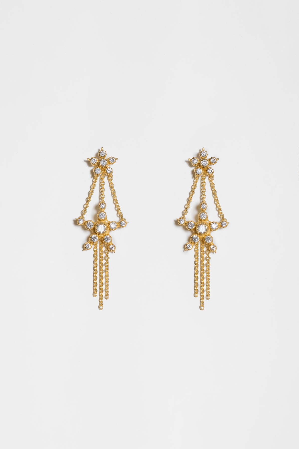 Pendiente Largo Dorado con Detalle de Estrella. Cómodos y versátiles para el día a día debido a su ligero peso. ¡Combínalos como quieras y dale un toque especial a tus looks!