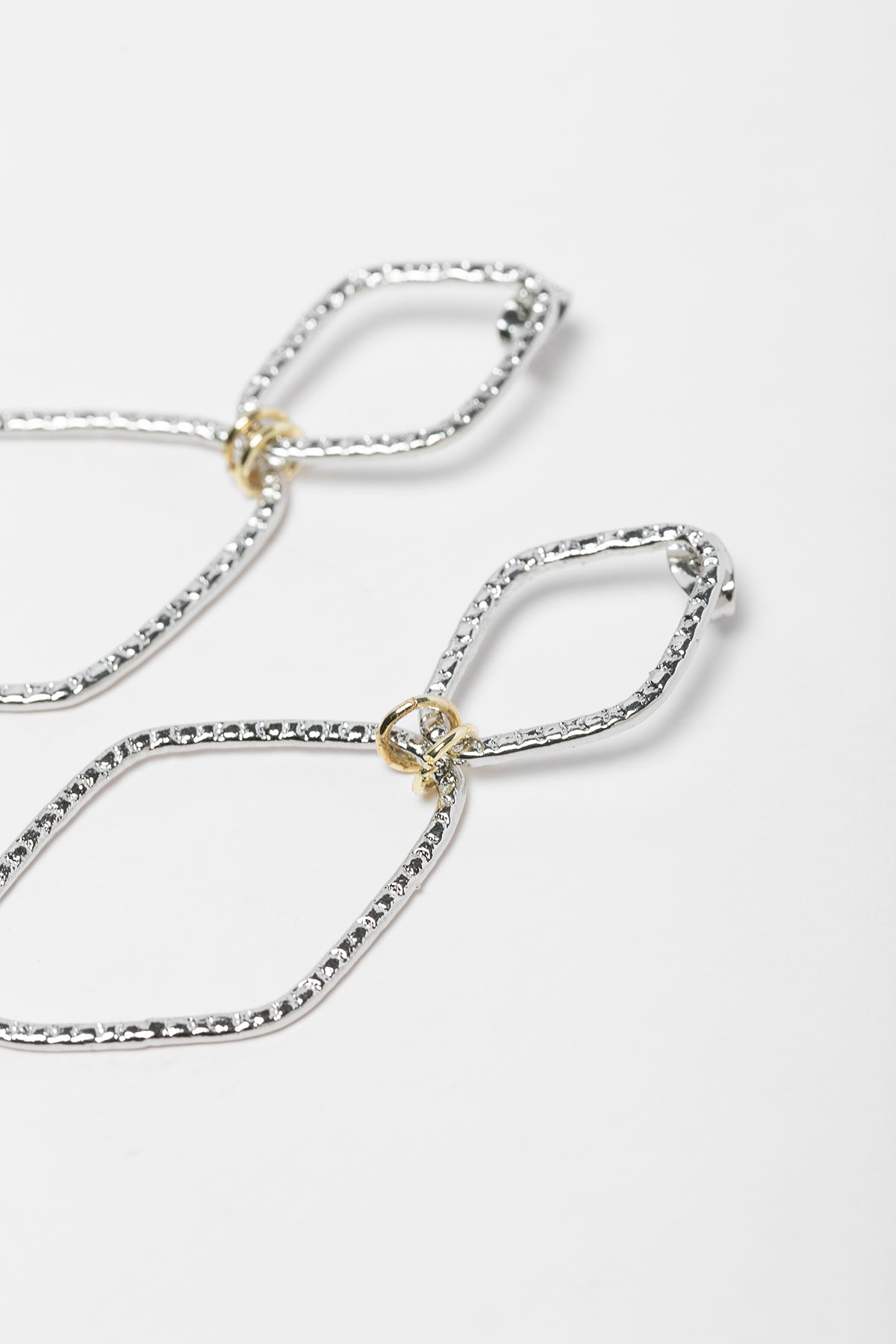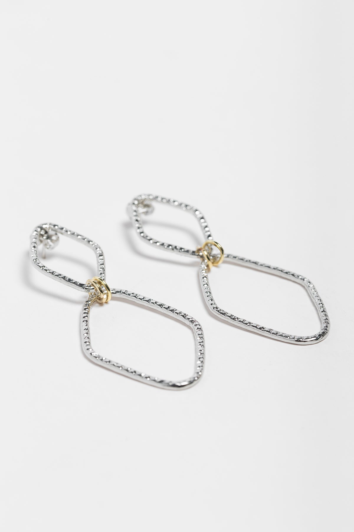 Pendientes Largos con Forma de Rombo Plateado. Cómodos de usar debido a su ligero peso. Perfectos para darle un toque especial a tus looks más formales en fiestas o eventos.