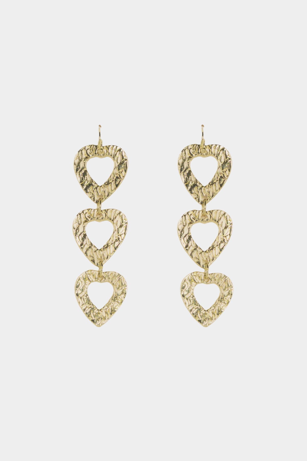 Pendientes Largos con Forma de Corazón. Color Dorado en tendencia. Su peso hace que sean cómodos y versátiles. ¡Ideales para cualquier fiesta o evento!
