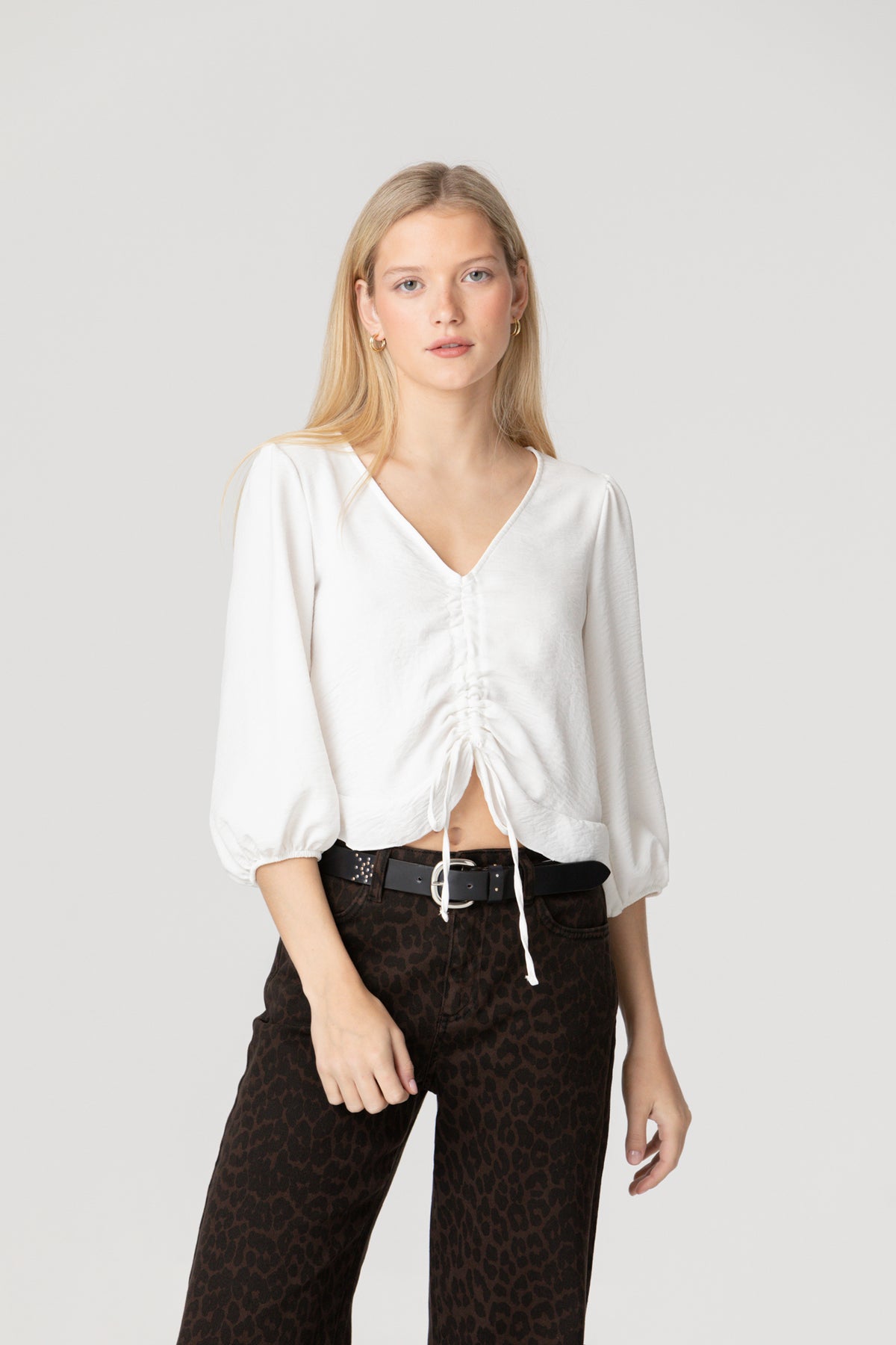 Camisa con Escote en V y Manga Francesa Acampanada. Diseñada con un favorecedor escote en pico y mangas francesas acampanadas que aportan estilo y movimiento. ¡Perfecta para combinar con cualquiera de nuestros jeans!