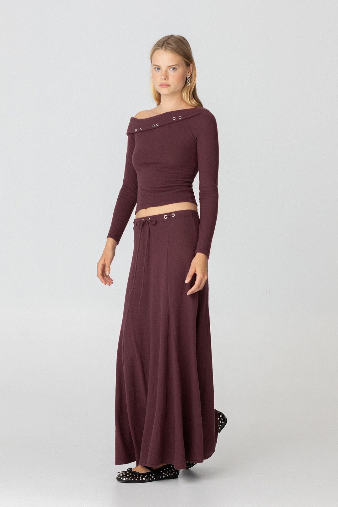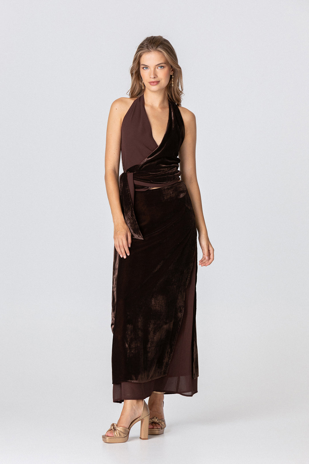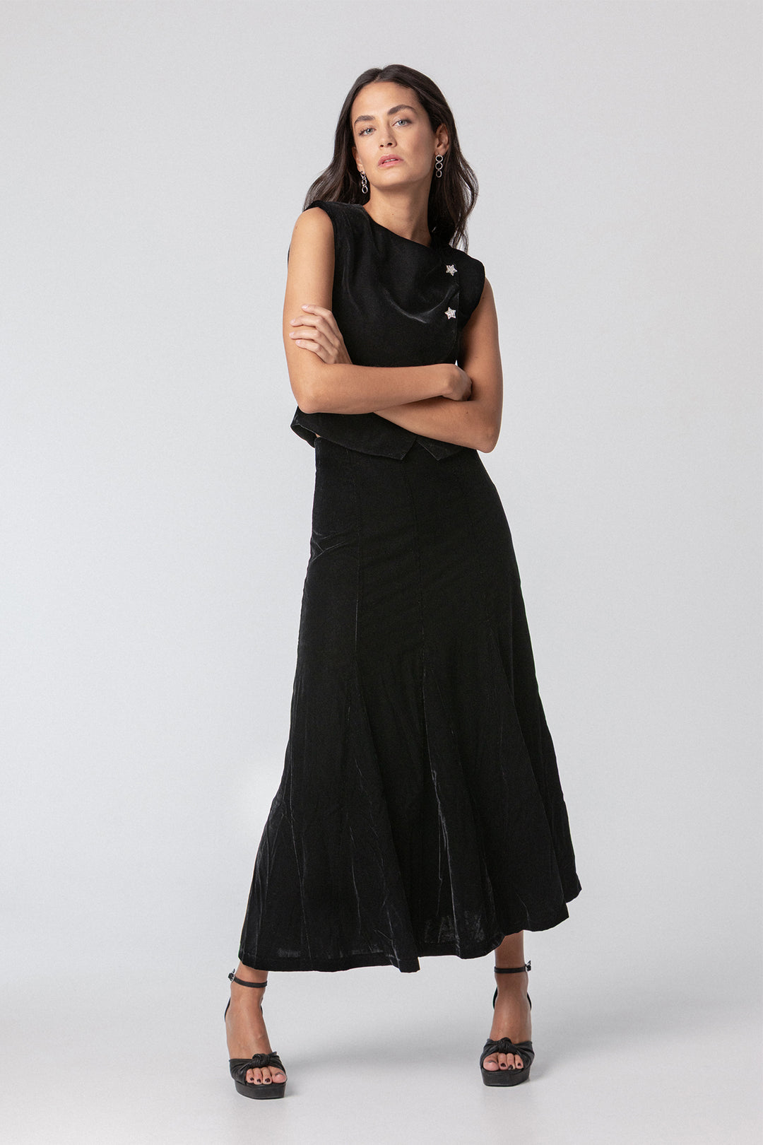 FALDA MIDI GODETS TERCIOPELO CONTRASTE