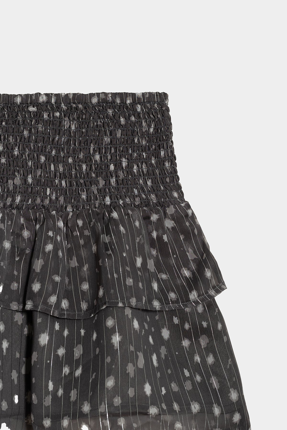 Falda Corta Estampada con Volantes. Tejido nido de abeja en la parte superior para un ajuste perfecto. Volantes en la parte inferior que aportan movimiento a la prenda. ¡Combínala con el TOP ESTAMPADO MANCHAS y consigue un total look!