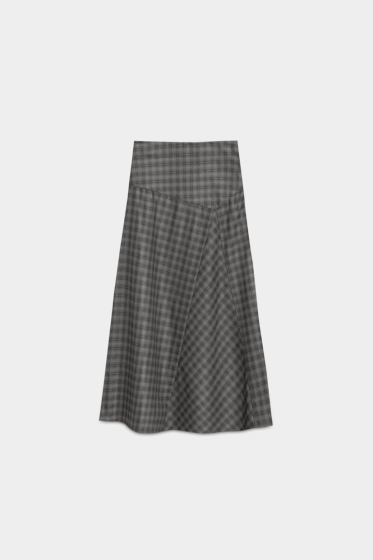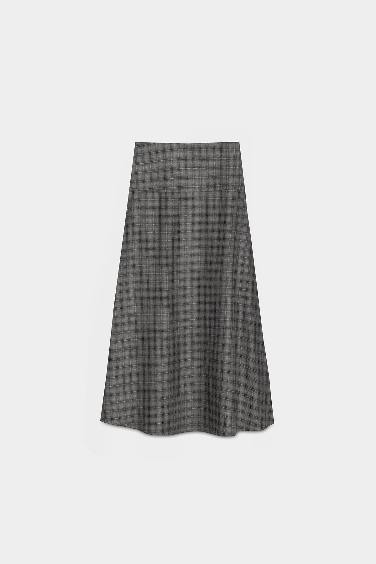 Falda Midi con Estampado de Cuadros en Tonos Grises. Confeccionada en un tejido ligero y fluido que realza la silueta y aporta movimiento a la prenda. Ideal para elevar tus looks del día a día. ¡Combínala como quieras y marca tendencia!
