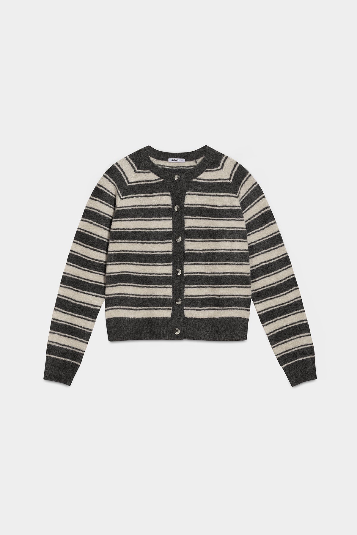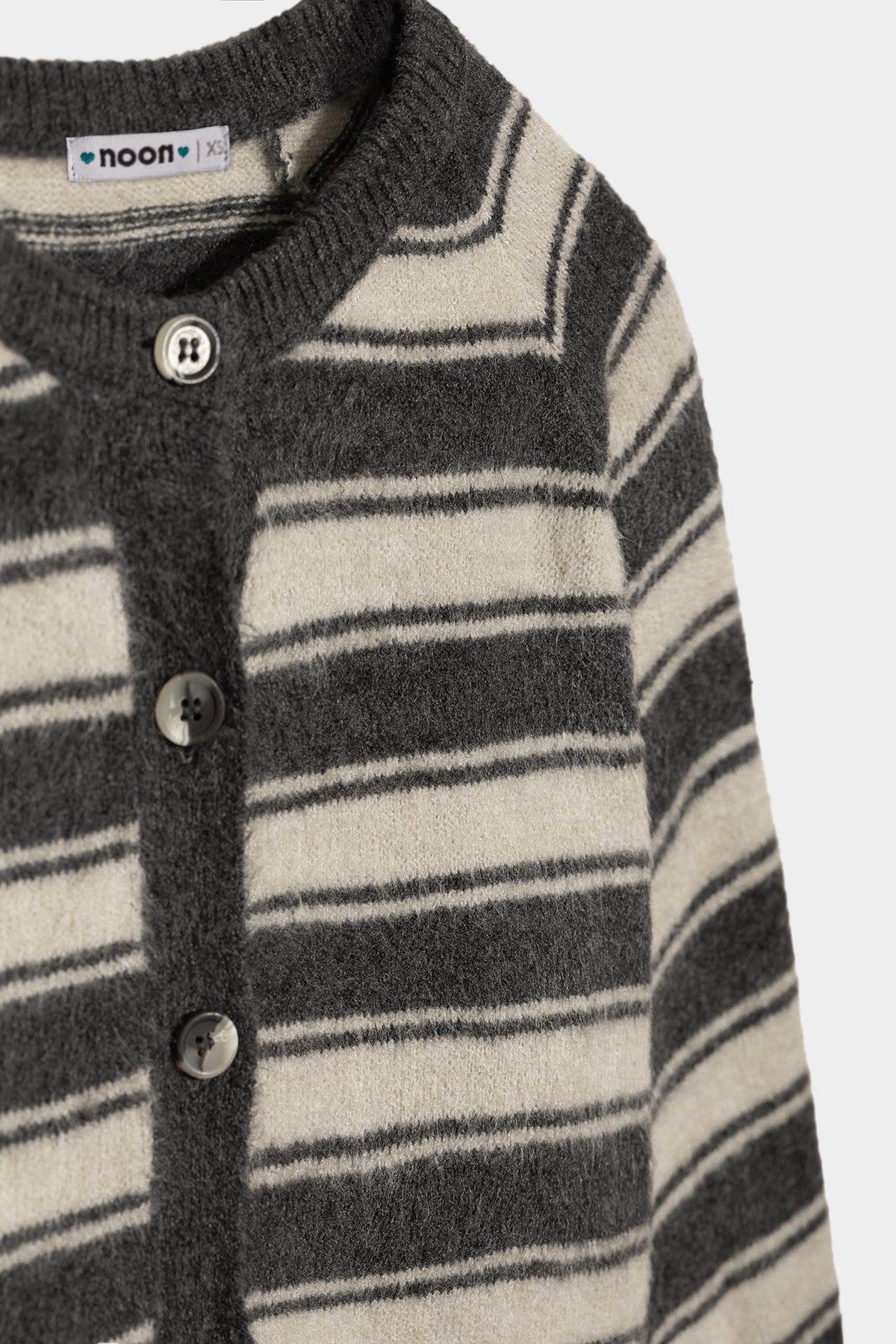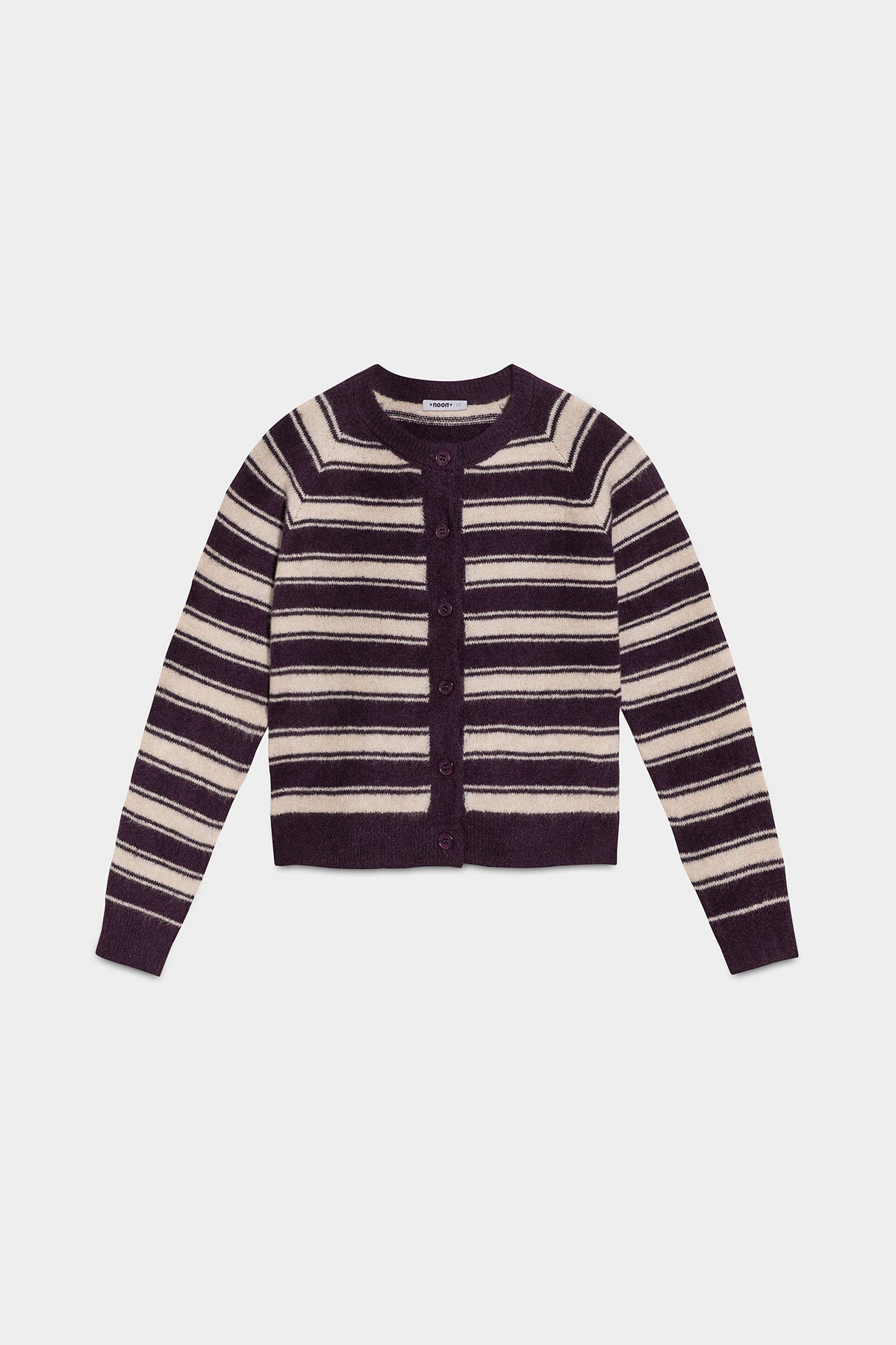 Cárdigan de Rayas Oversize. Cierre con botones delanteros. Textura y tejido suave. Cuello redondo y mangas largas. ¡Disponible en color gris y morado para que elijas tu favorito!