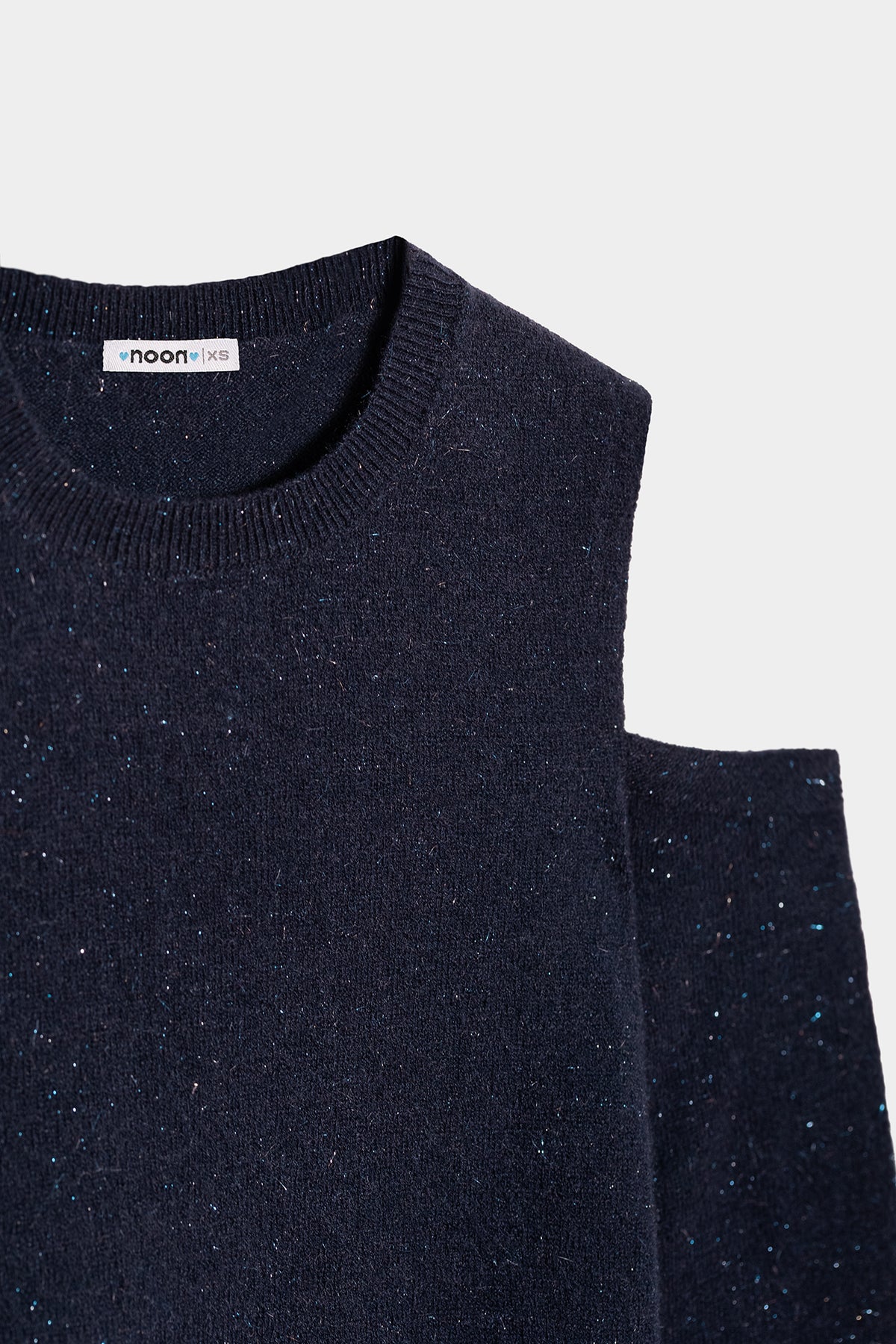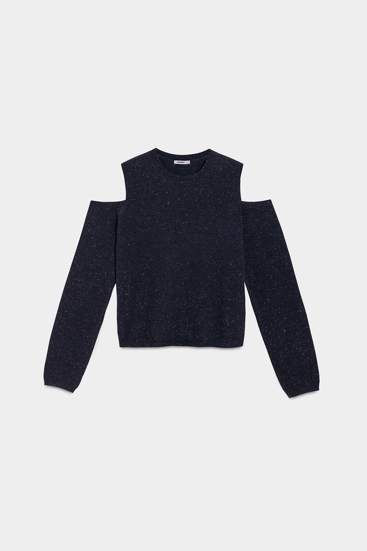 Jersey Top con Hombros al Aire y Cuello Redondo Color Azul. Tejido suave y elástico que se ajusta perfectamente realzando la figura. Se convertirá en un básico de tu armario. ¡Combínalo con cualquiera de nuestros jeans para conseguir un look ideal!