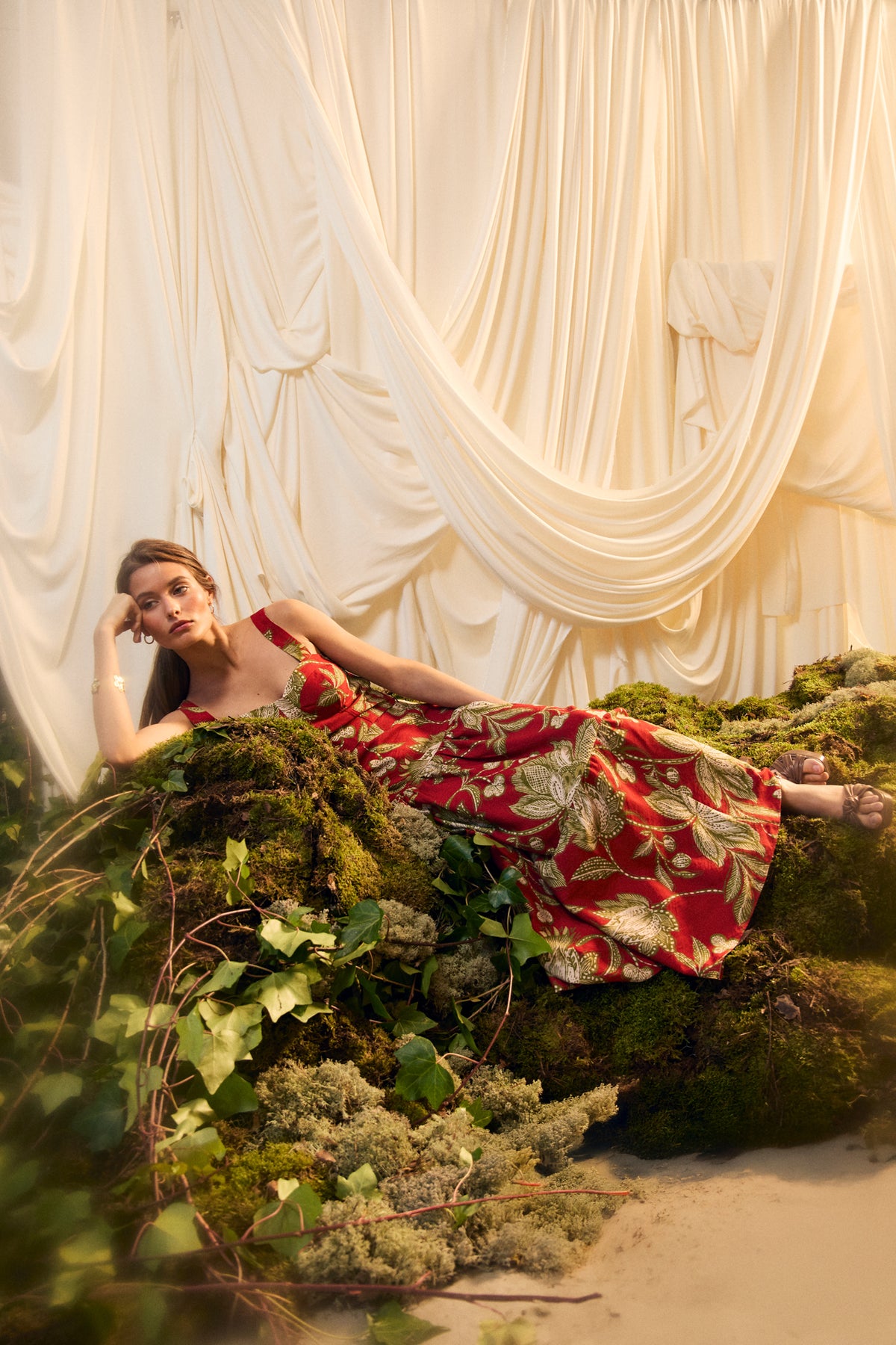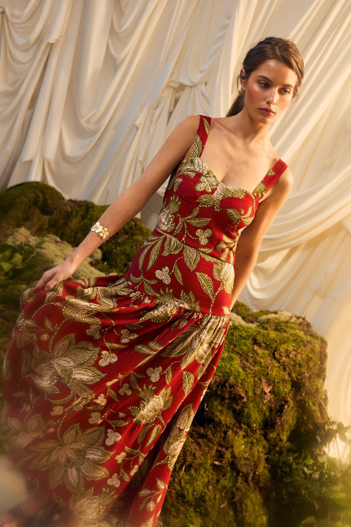 Falda Larga Estampada en Tonos Rojos. Detalle de volante en la parte inferior. Diseño elegante y sofisticado ideal para cualquier evento. ¡Combínalo con el Top Chiara a juego para conseguir un look de invitada perfecto!