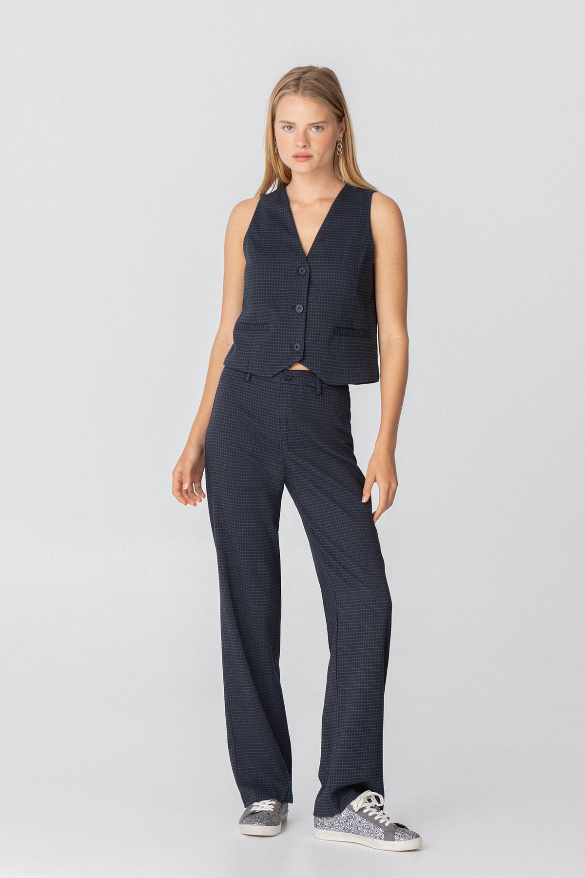 Final del formularioPantalón de Vestir Recto con Estampado de Cuadros. Cierre delantero con botón y cremallera para un ajuste perfecto. ¡Combínalo con la BLAZER y el CHALECO a juego para conseguir un look completo!
