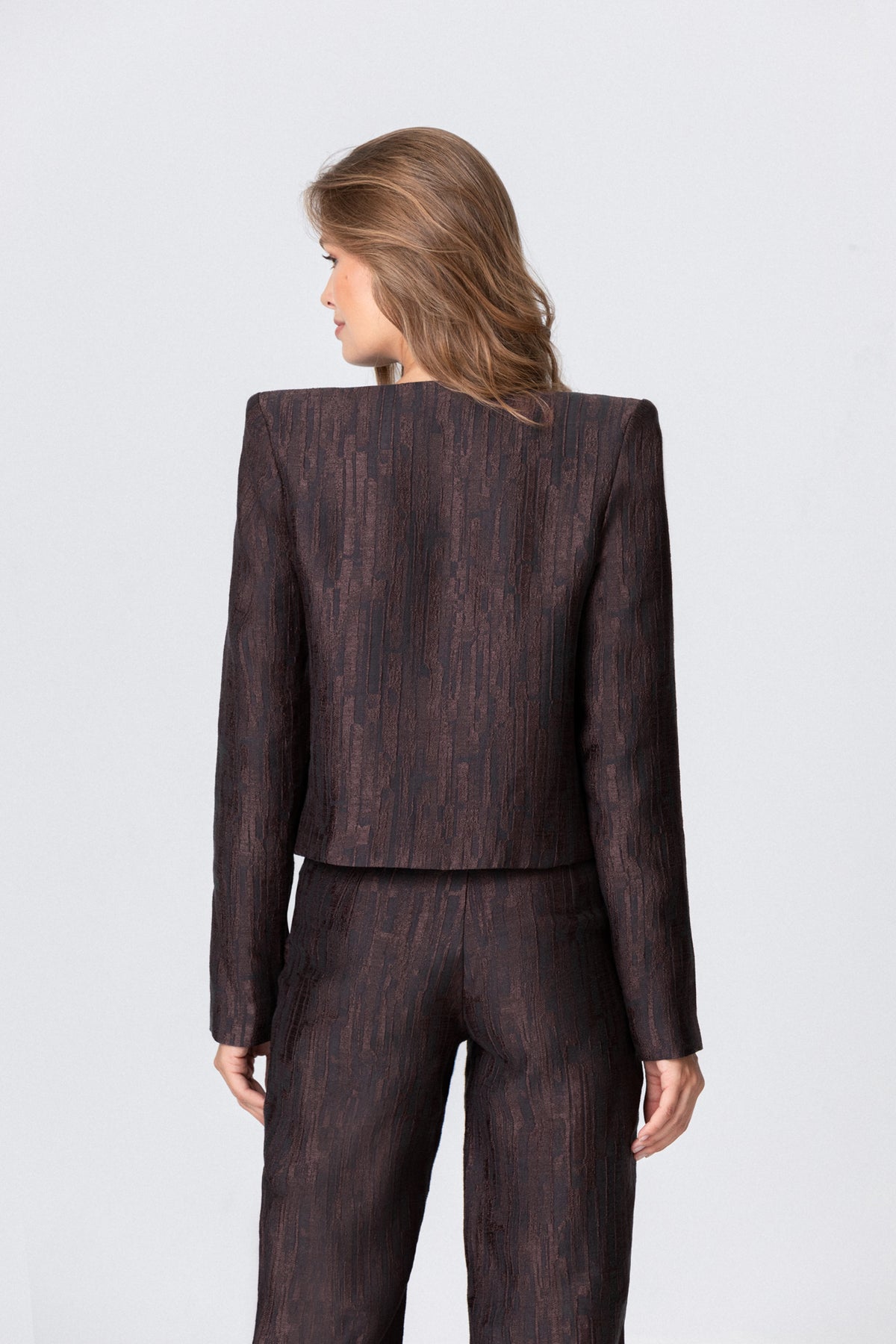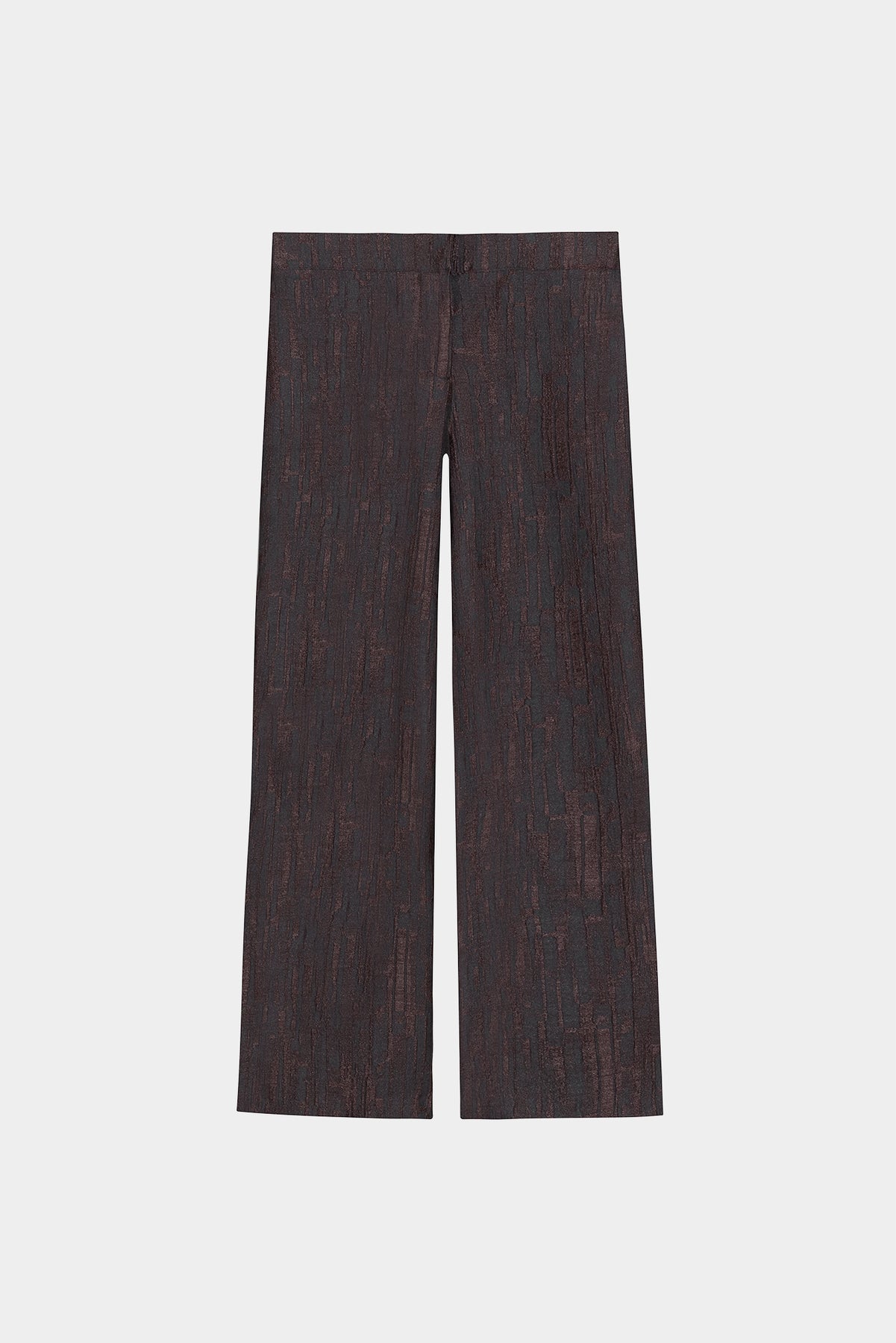 Pantalón de Vestir con Estampado en Tonos Morados. Talle medio y corte recto, cierre con cremallera. Combínalo con la CHAQUETA a juego para conseguir un look completo. ¡Ideal para cualquier fiesta, evento u ocasión especial!