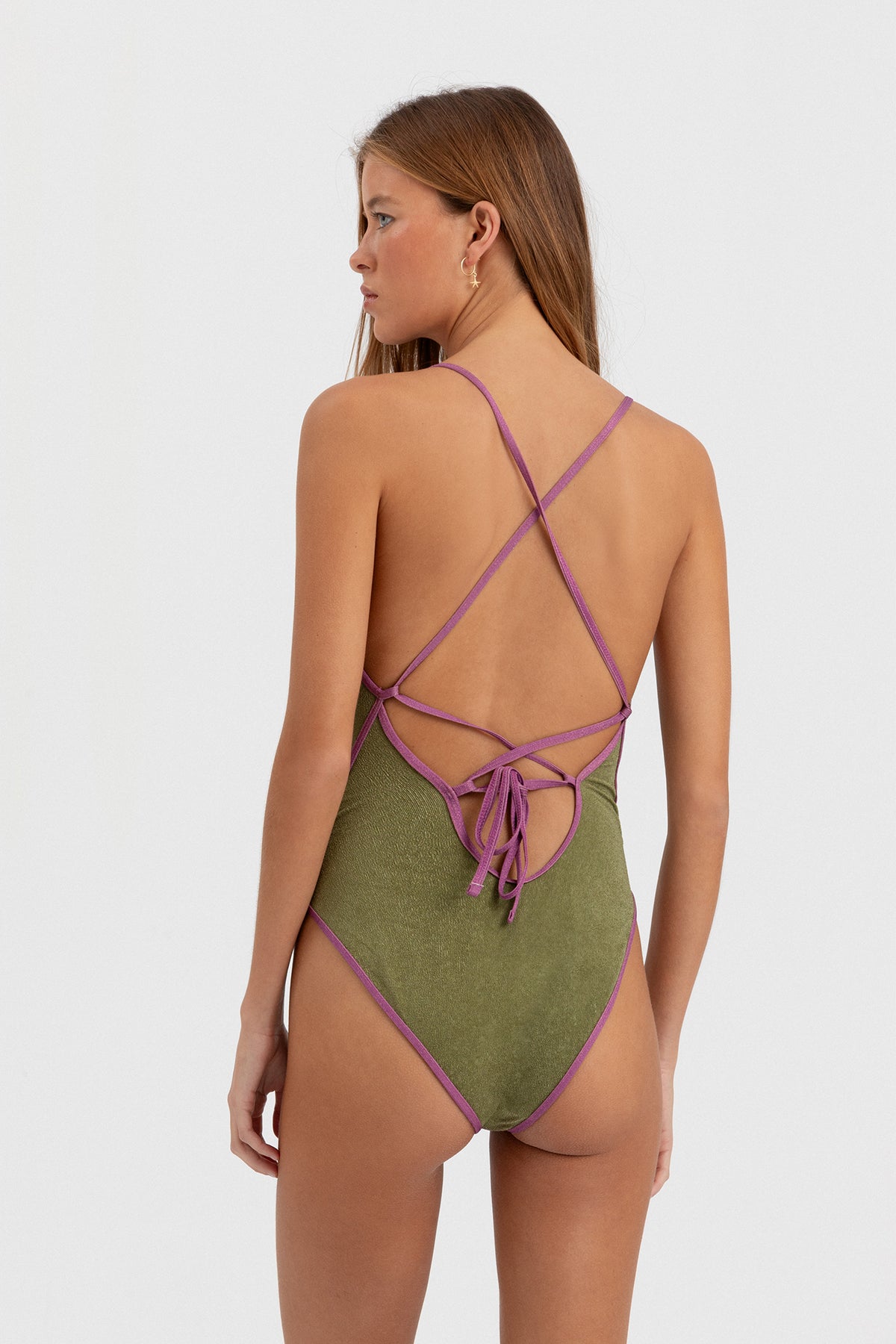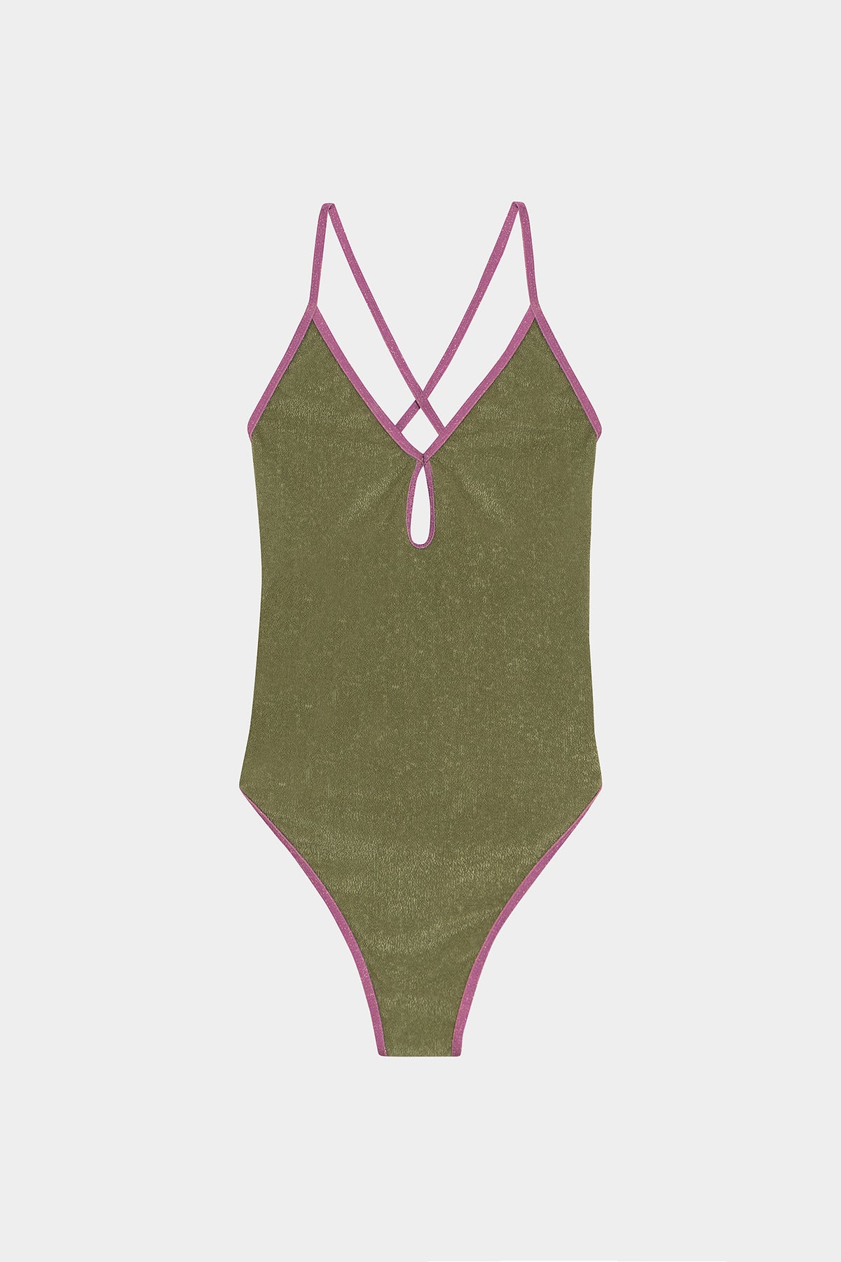 Bañador de Escote Triangular con Detalle De Lurex. Tirantes regulables en la espalda. Tejido con brillo. Bañador complemente forrado. ¡Se convertirá en tu imprescindible en tus tardes de verano!
