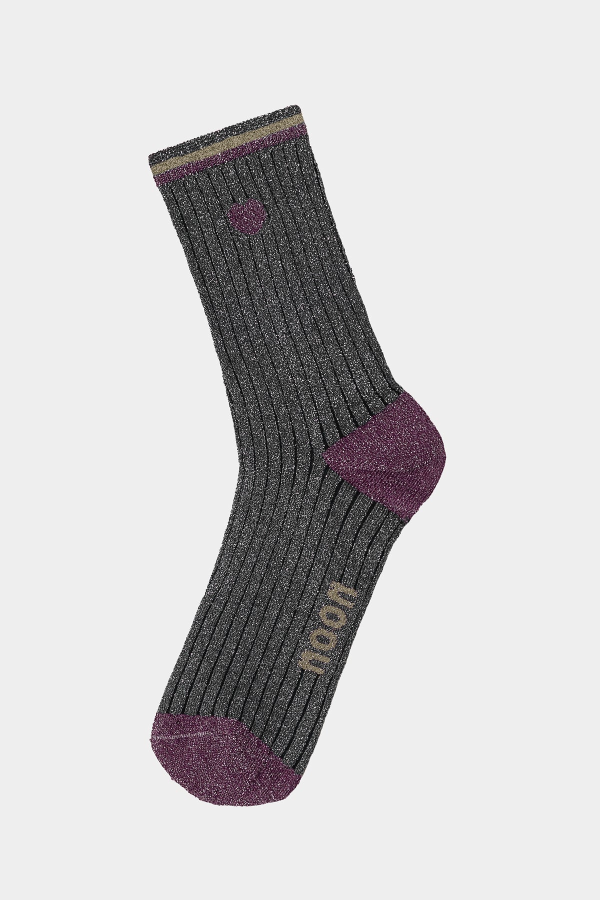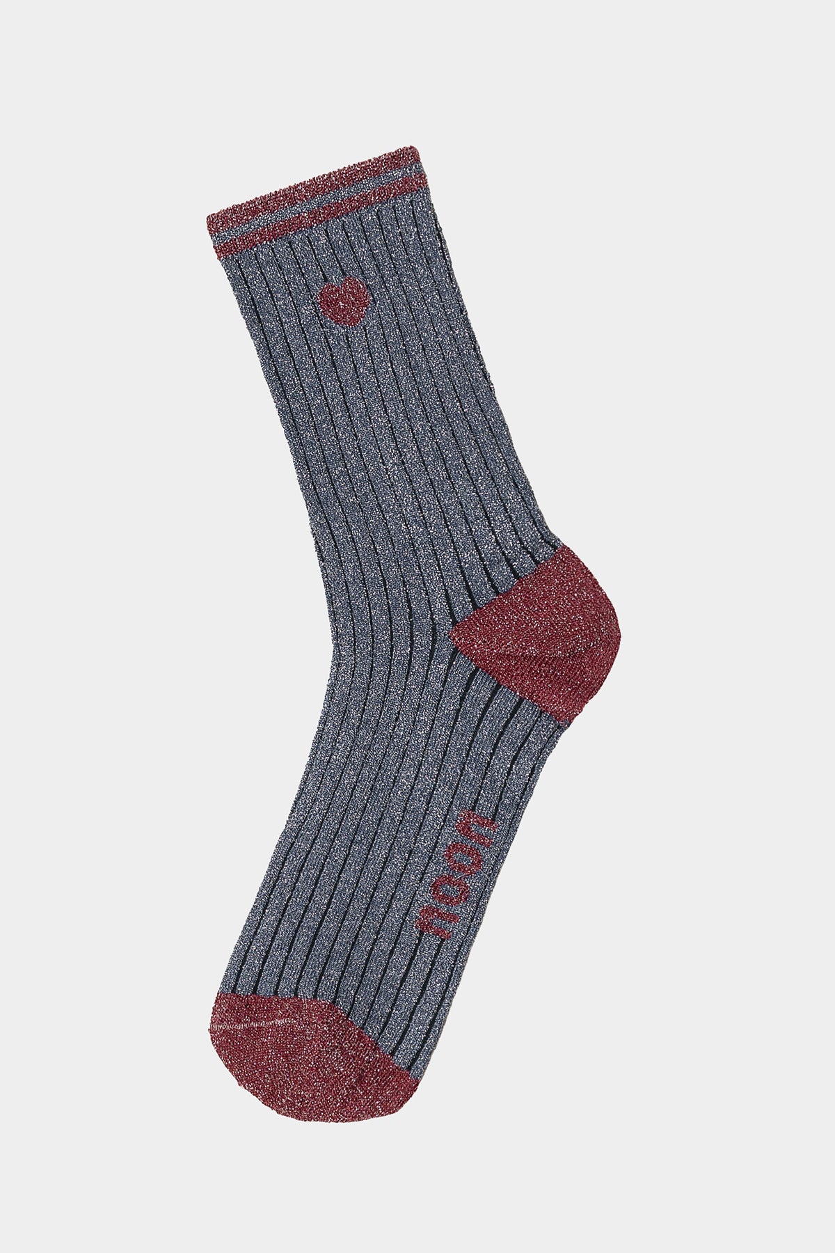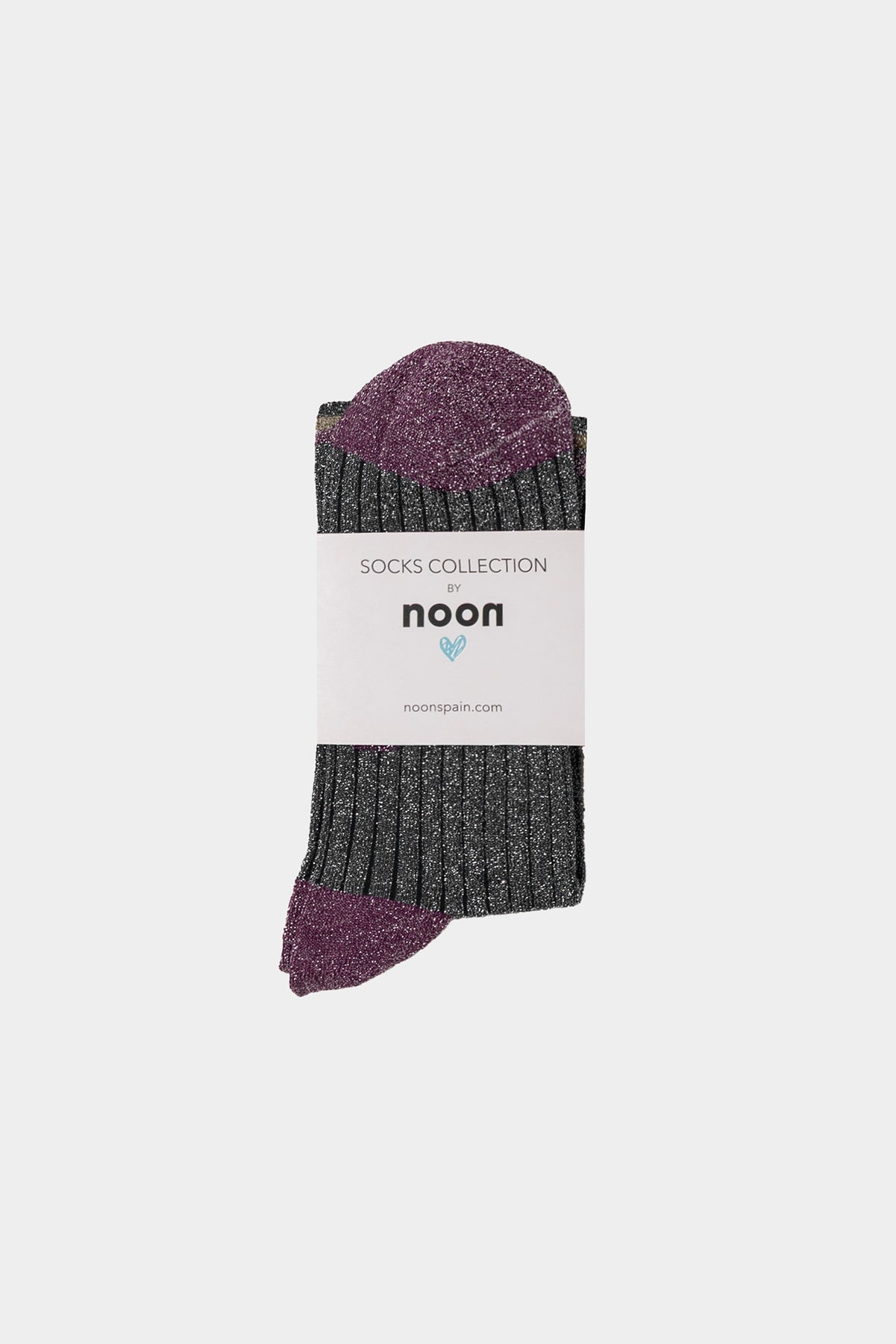 Calcetines de Rayas y Tejido Lurex con Brillo. Disponible en color Azul y Gris para que elijas tu favorito. Detalle del logo de noon en contraste. ¡Dale un toque de color a tus looks!