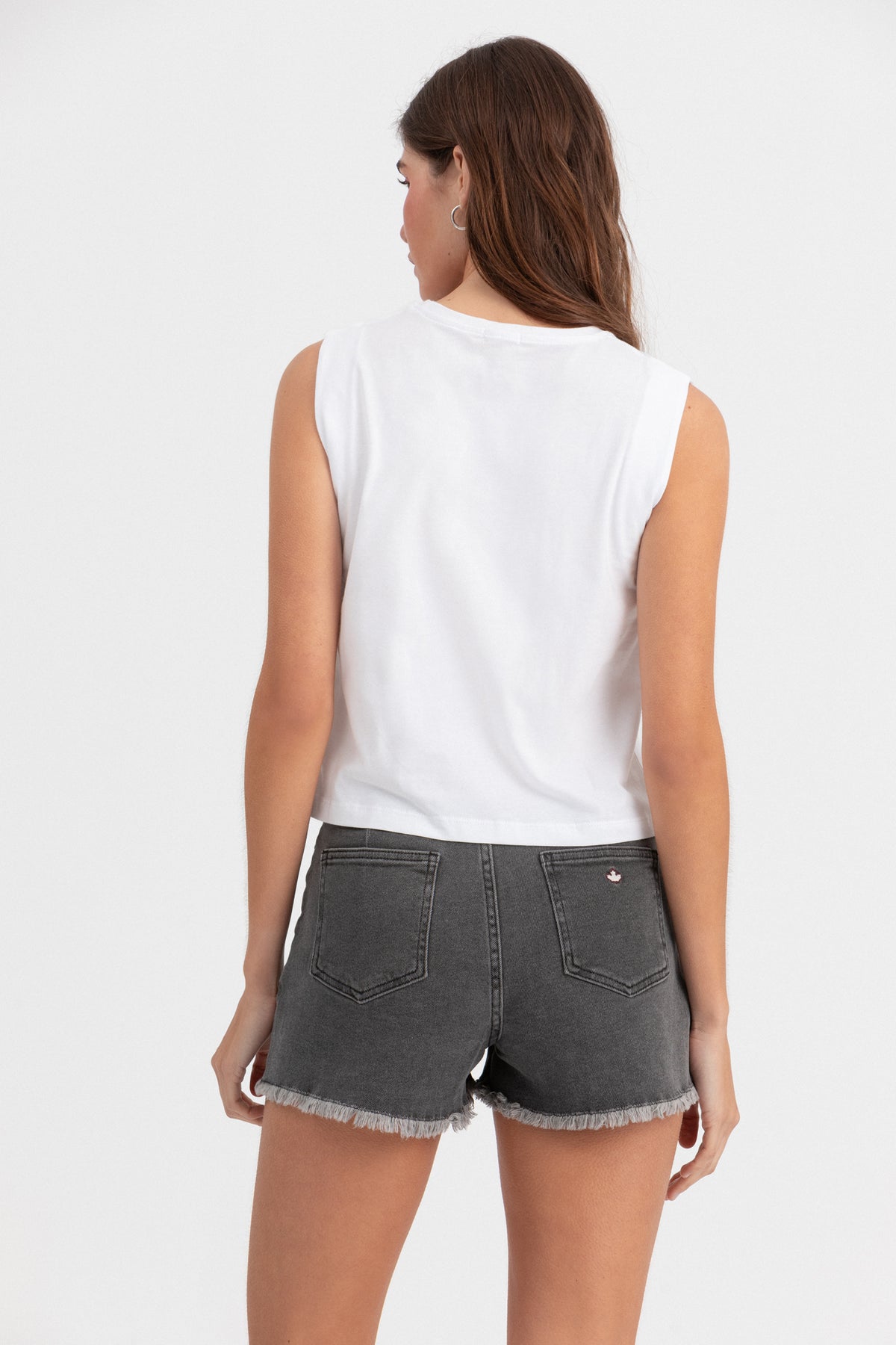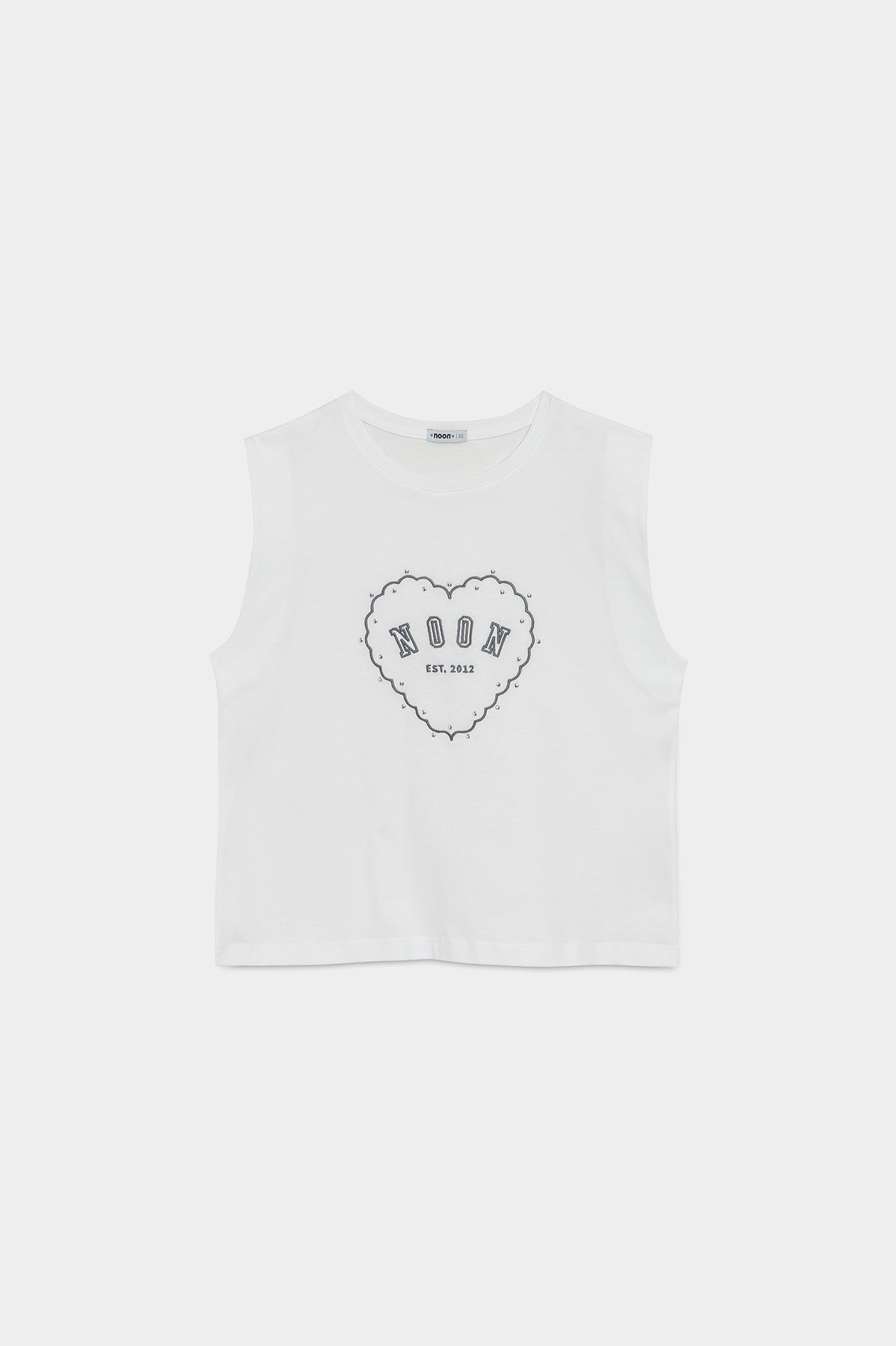 Camiseta de Algodón Básica Sin Mangas. Detalle de corazón. Logo de noon bordado en la parte inferior. Color blanco en tendencia. ¡Se convertirán en tus básicos para el día a día!