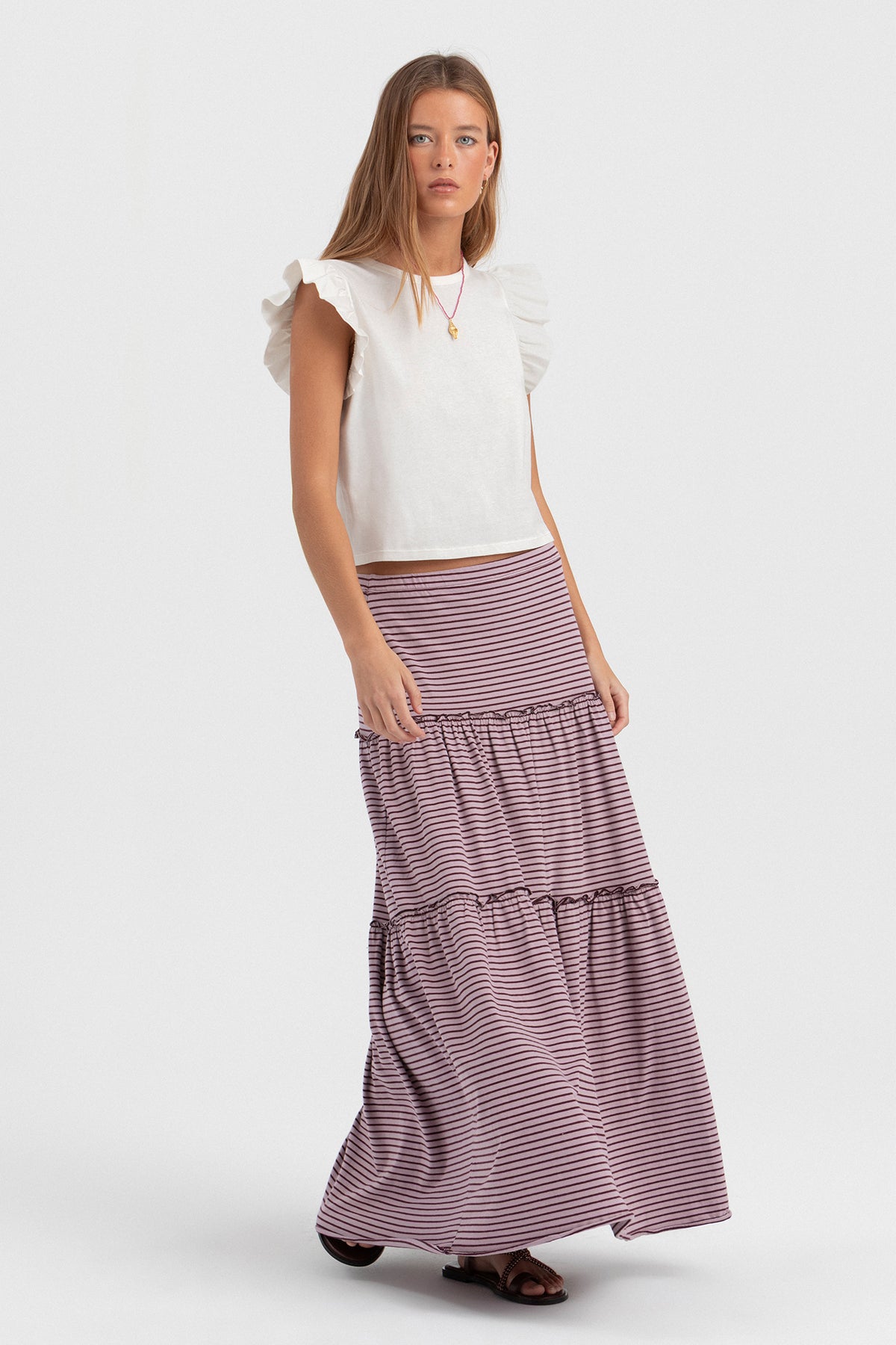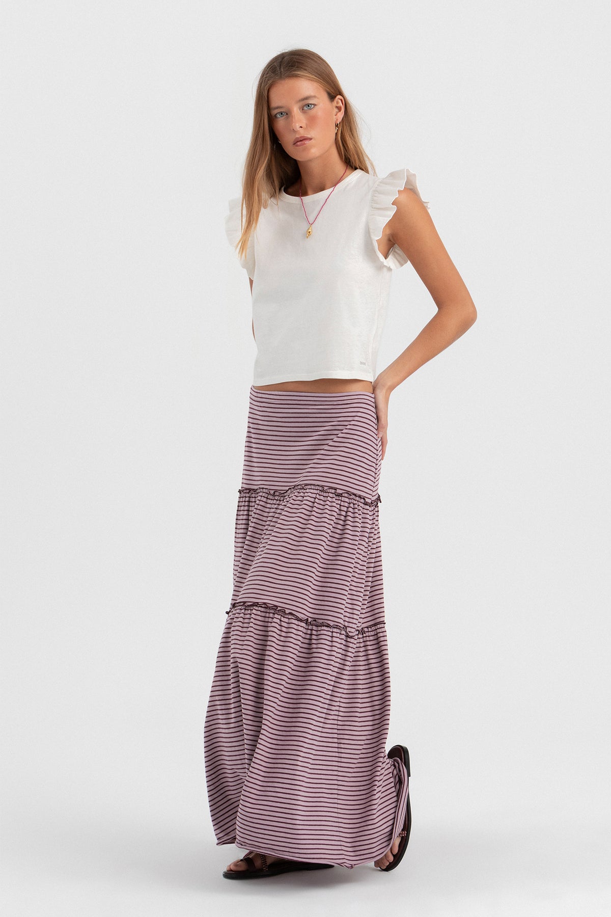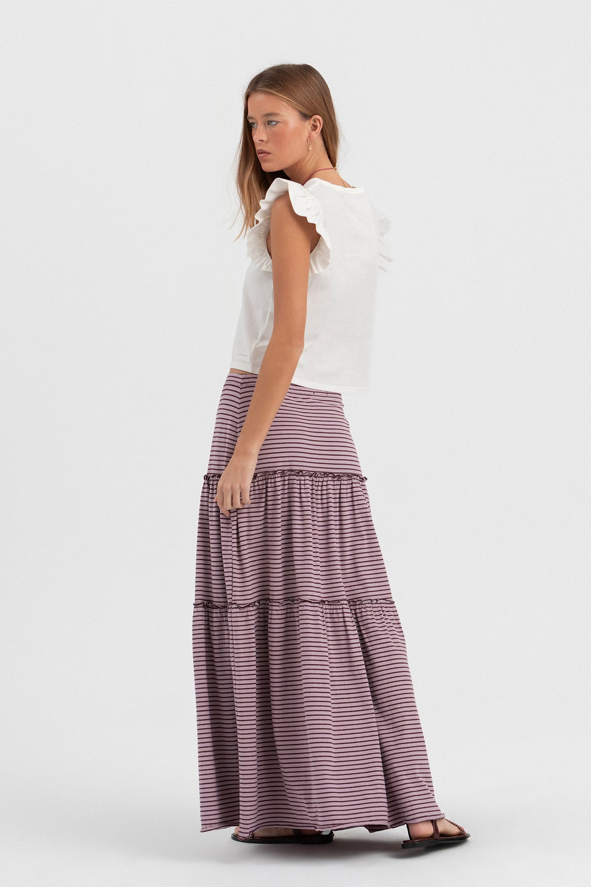 FALDA RAYAS VOLANTE FRUNCIDO