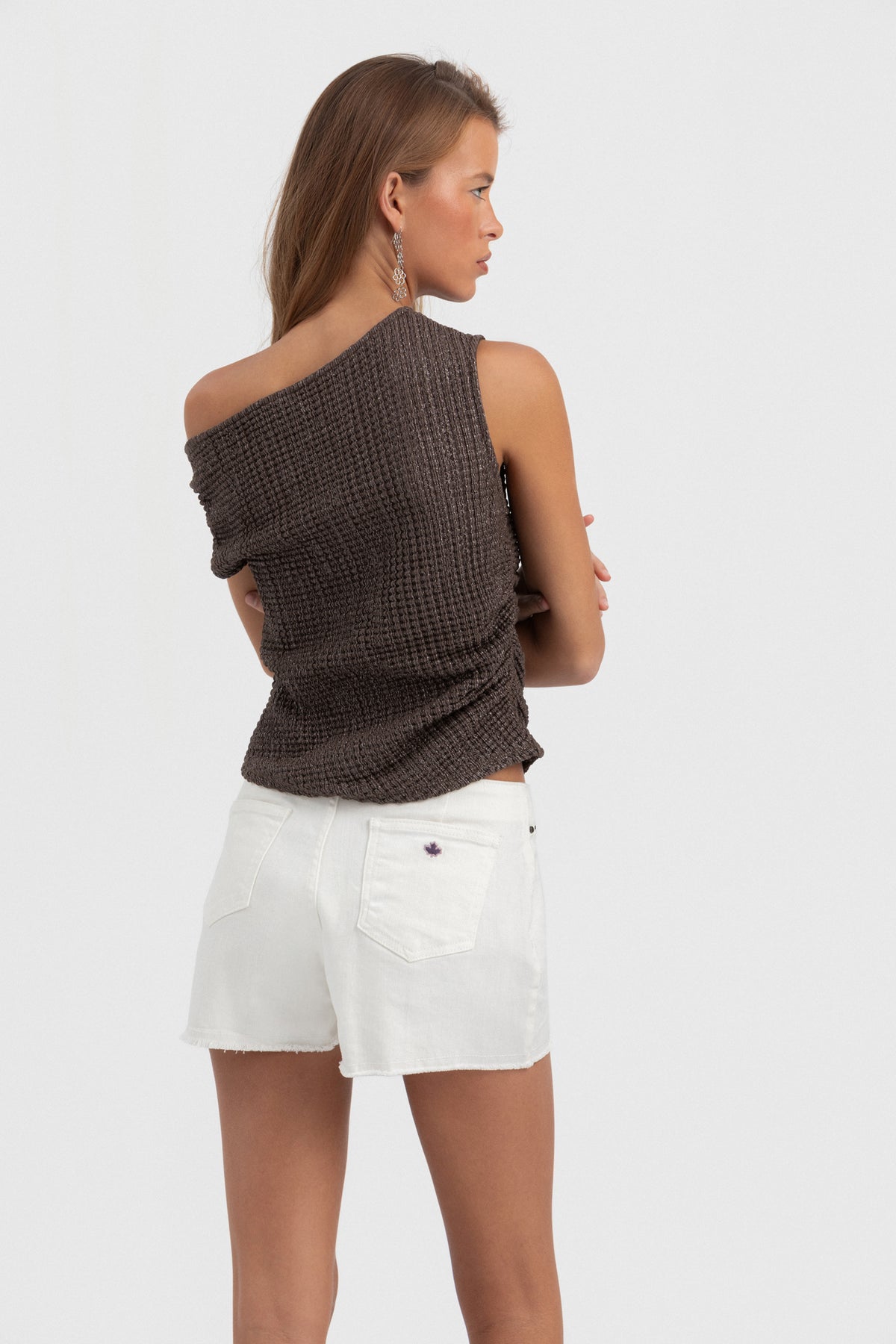TOP ASIMETRICO TEXTURA LUREX