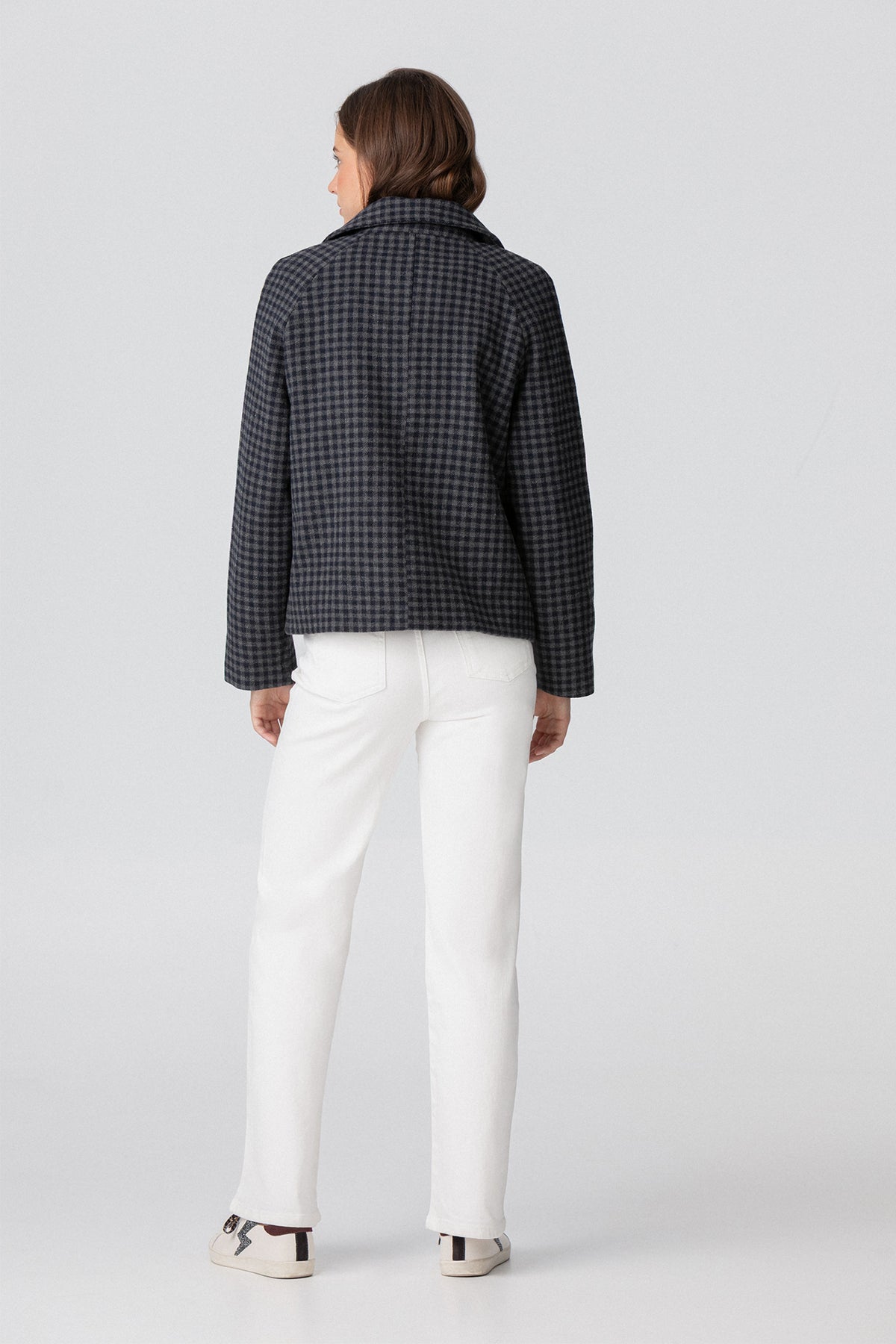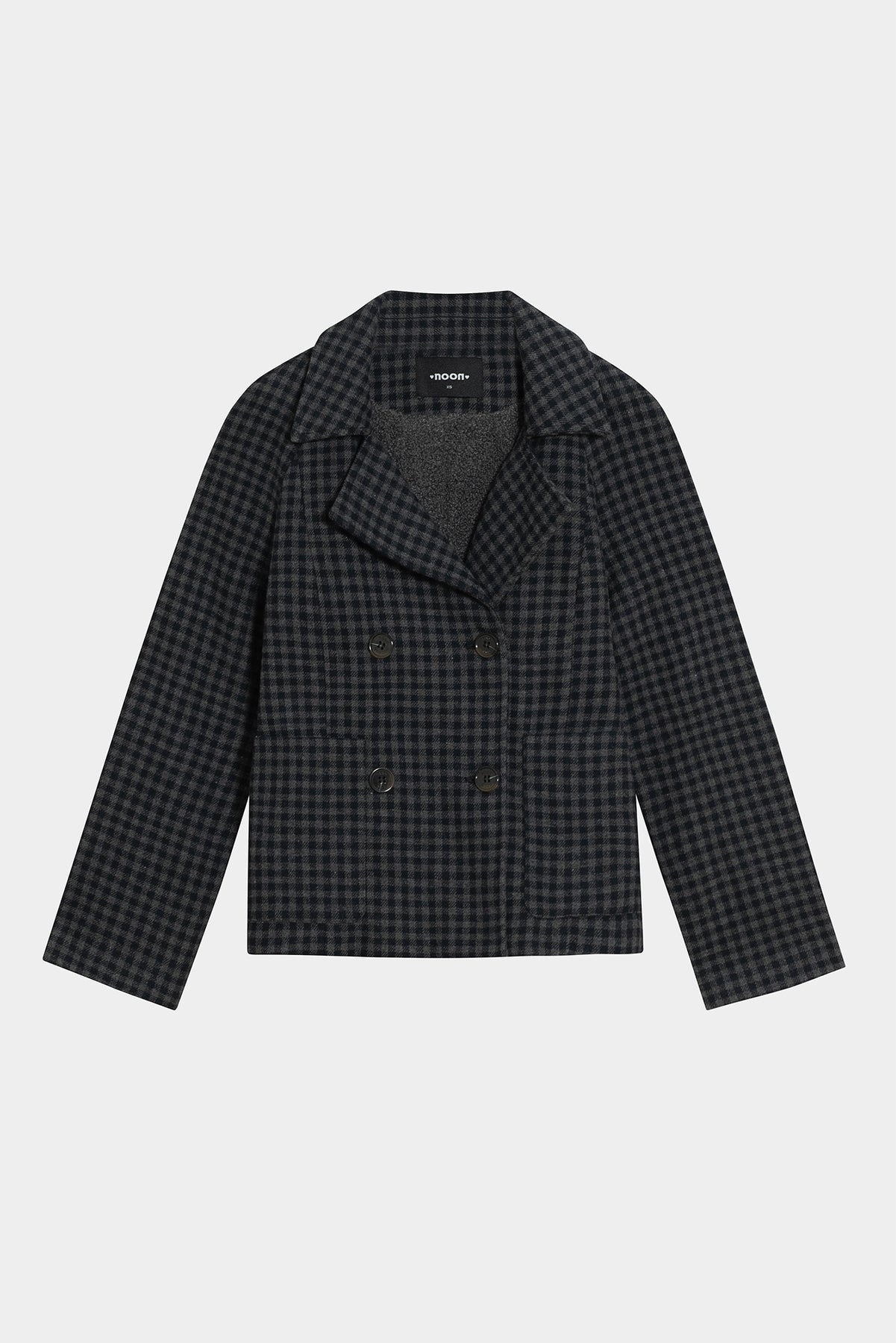 SHORT CHECKERED DOUBLE-BREADED COAT