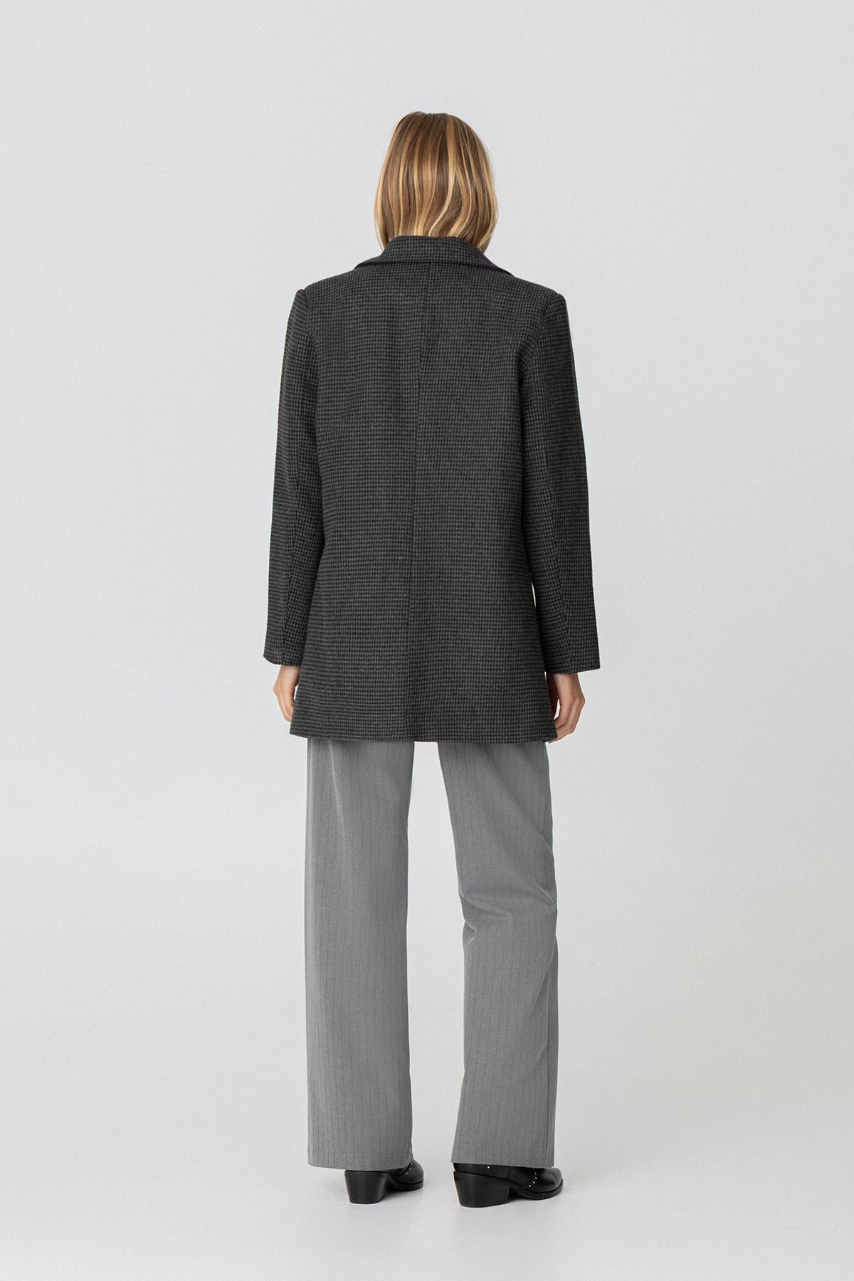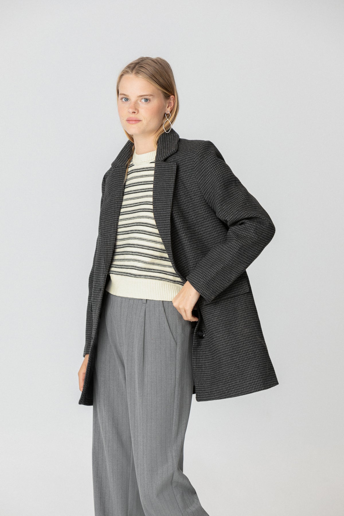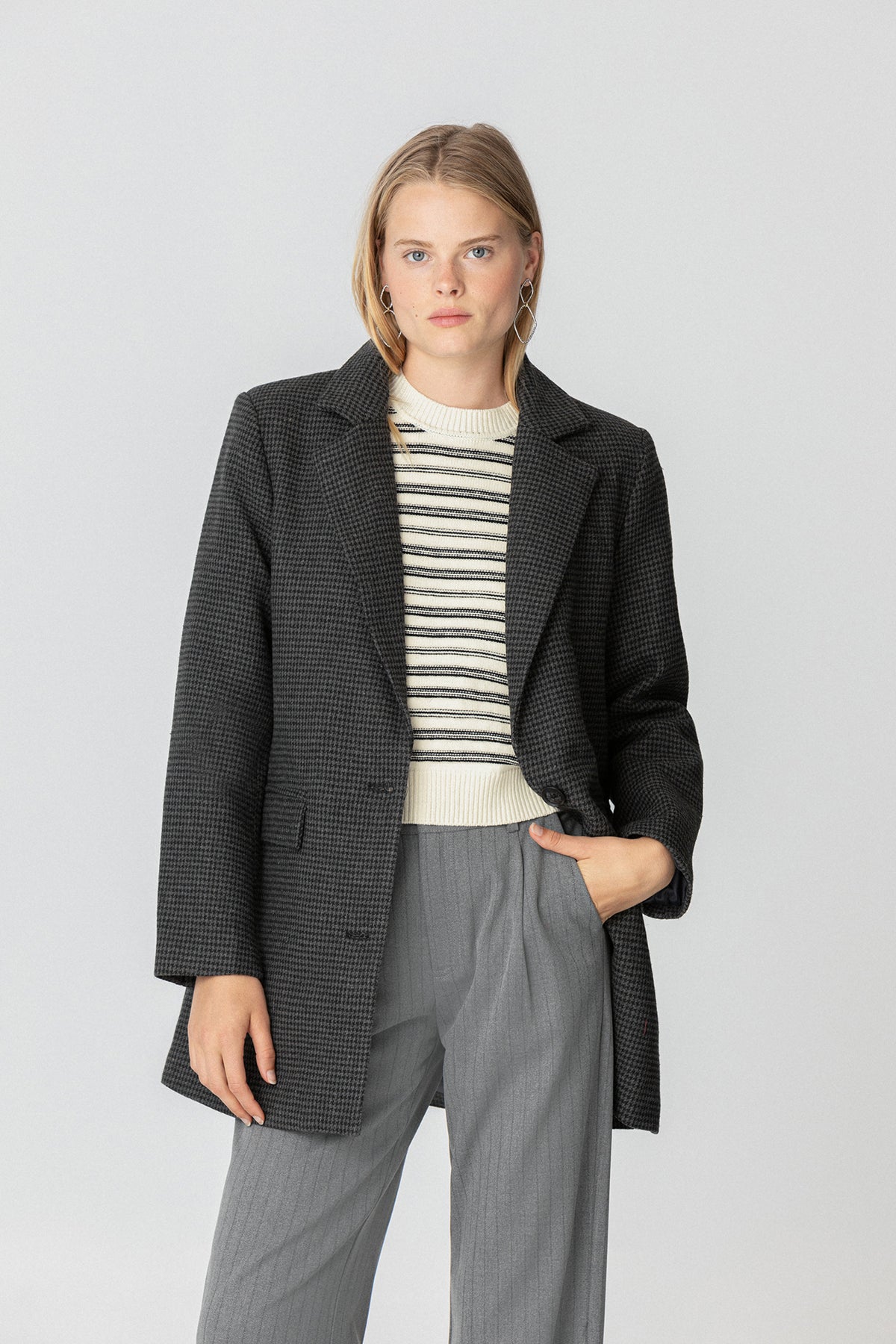 Long Houndstooth Coat with a Straight Cut. Collar with flaps, long sleeves, two side pockets with flaps and double closure Front button closure. Ideal for adding a formal touch to your looks!