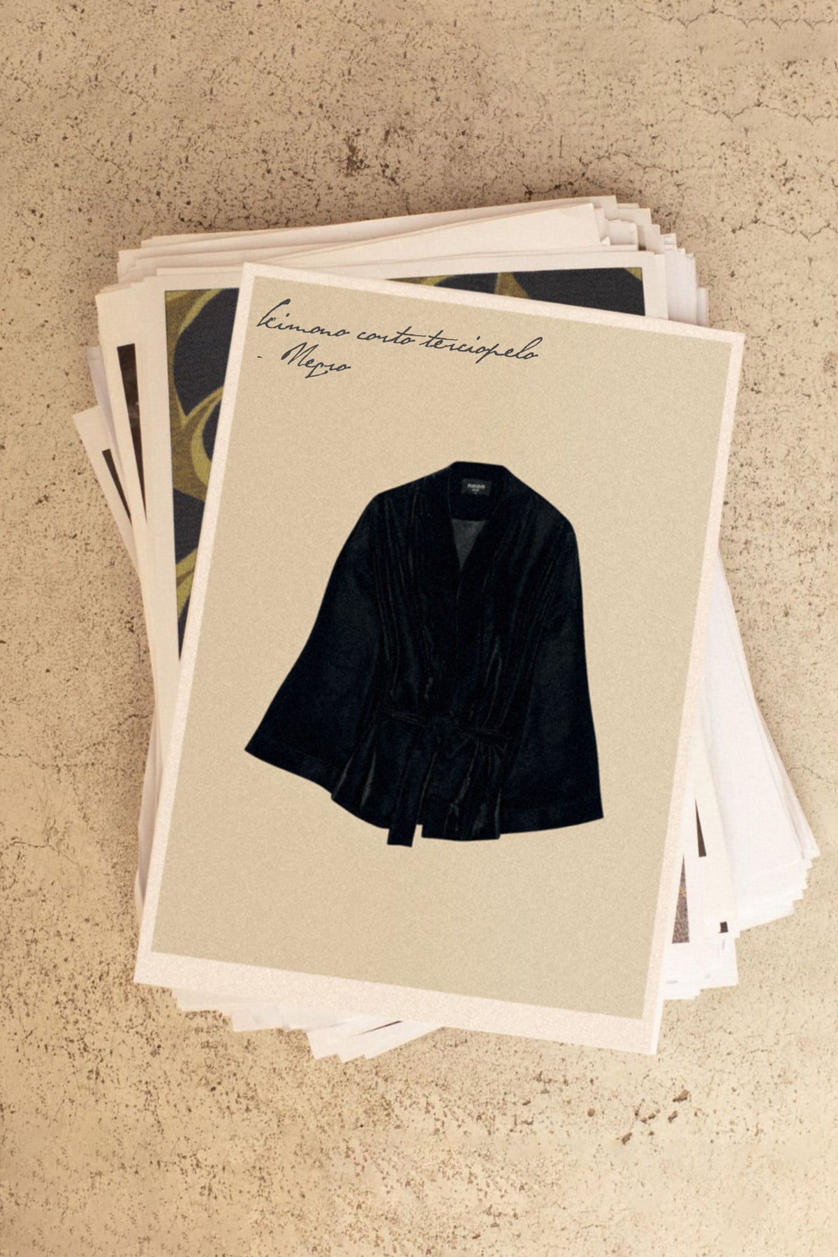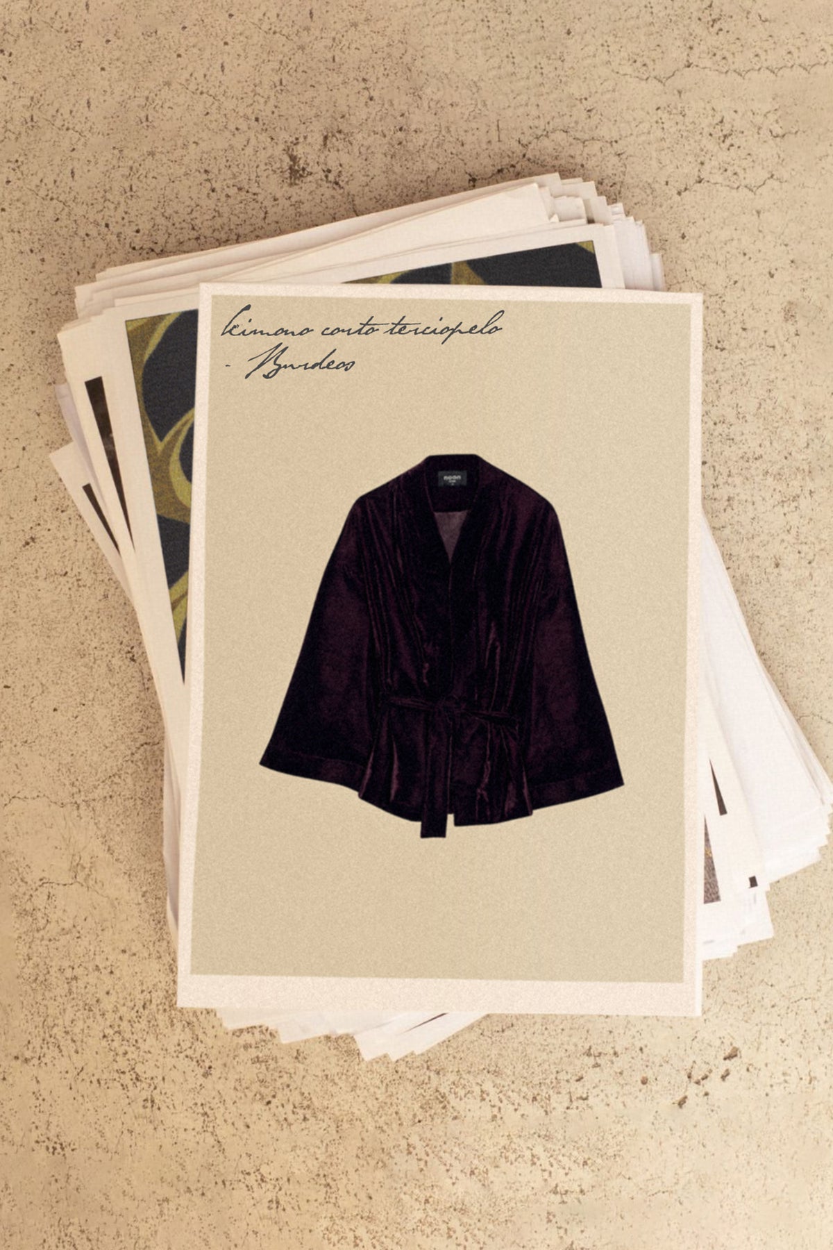 Short Velvet Kimono with Long Sleeves . Design Wraparound with front tie closure and oversized sleeves for style and comfort. Available in black and burgundy. Perfect for Complete your guest looks with a distinctive touch this season!