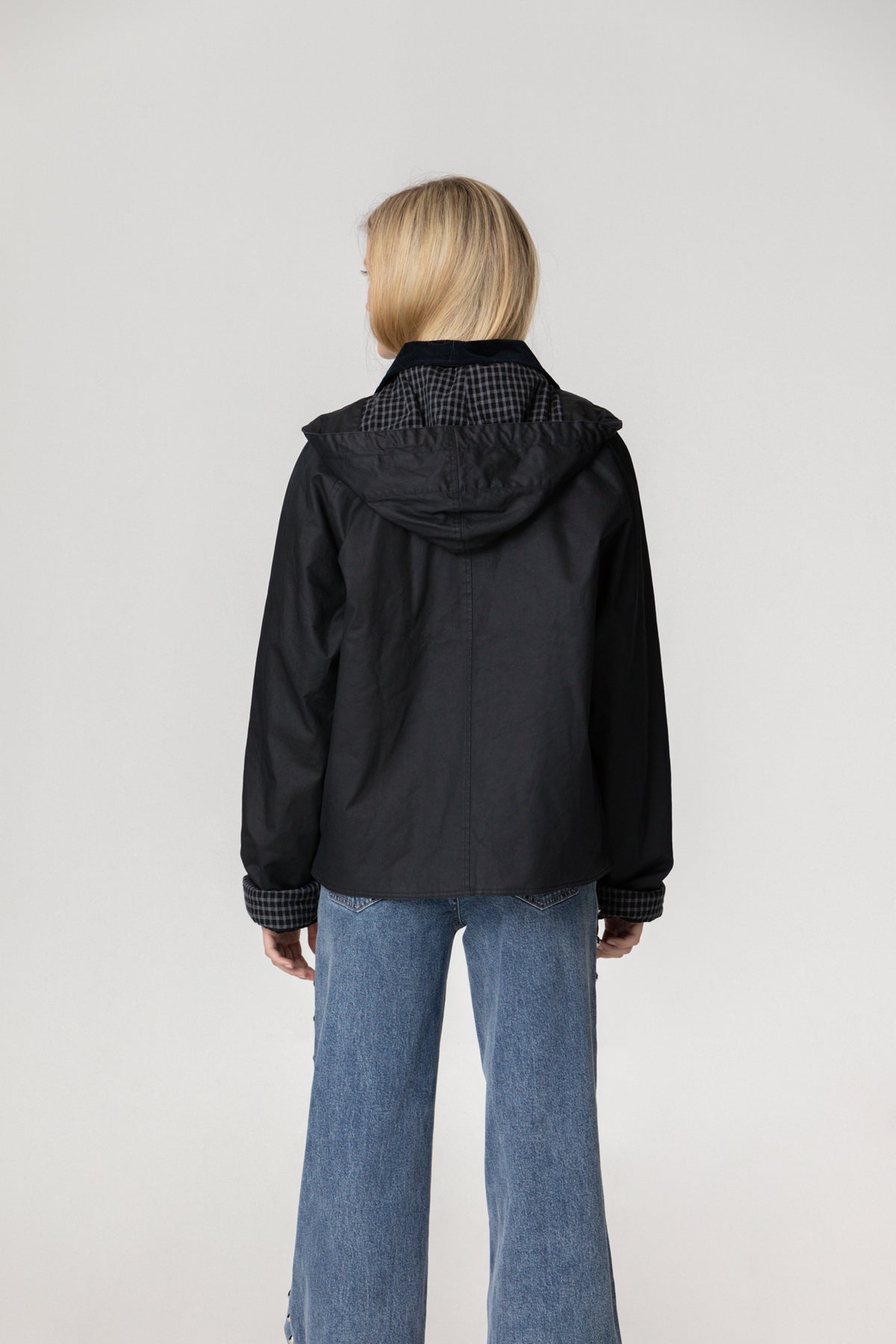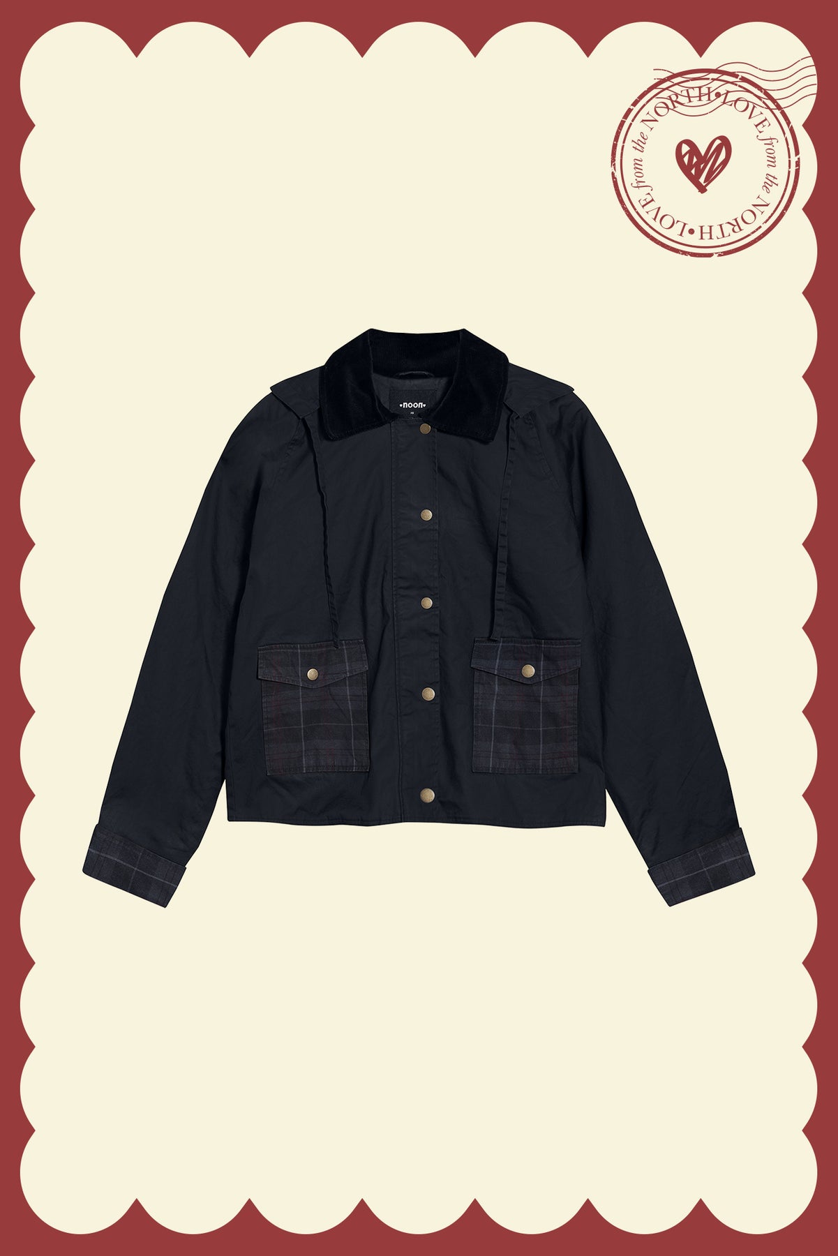 Waterproof Parka with Checkered Detail and Collar Corduroy. Front zip and hook-and-eye closure. Checkered lining and cuffs. A matching set. It will become a must-have on rainy days and It's cold this season!