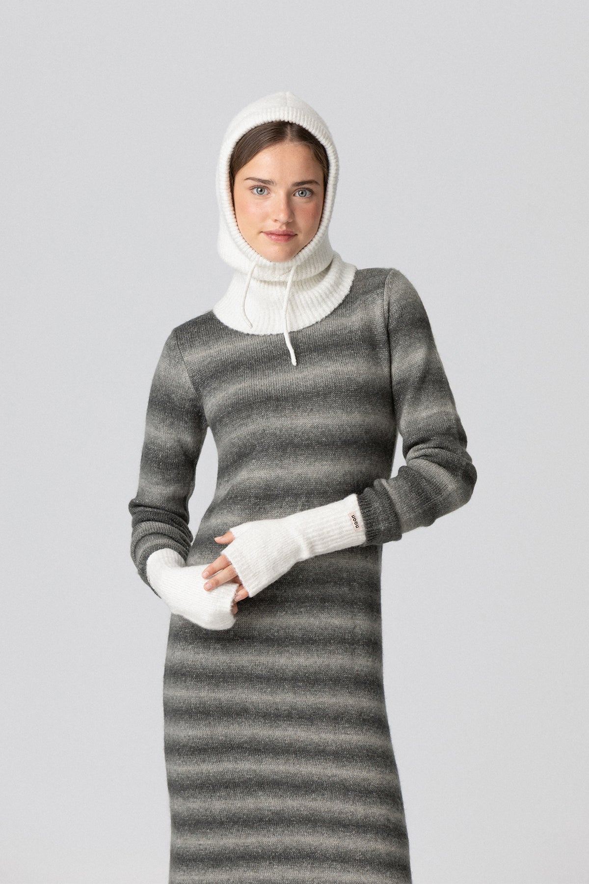 Soft knit balaclava. Made with trendy lurex. Perfect for this winter. Set the trend this season and protect yourself from the cold. Available in white and gray, so you can choose your favorite. Pair it with the matching mittens to complete your look!