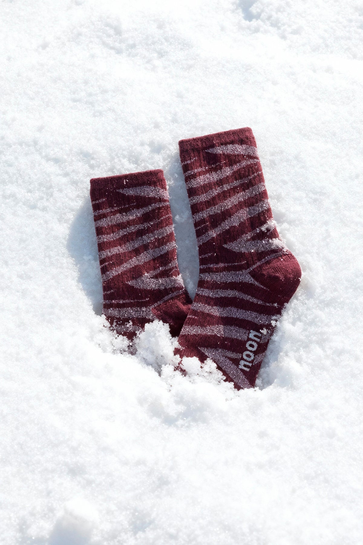 Shiny zebra print socks. Available in burgundy and black, so you can choose your favorite. Cotton blend. Contrast noon logo detail. Add a pop of color to your look!