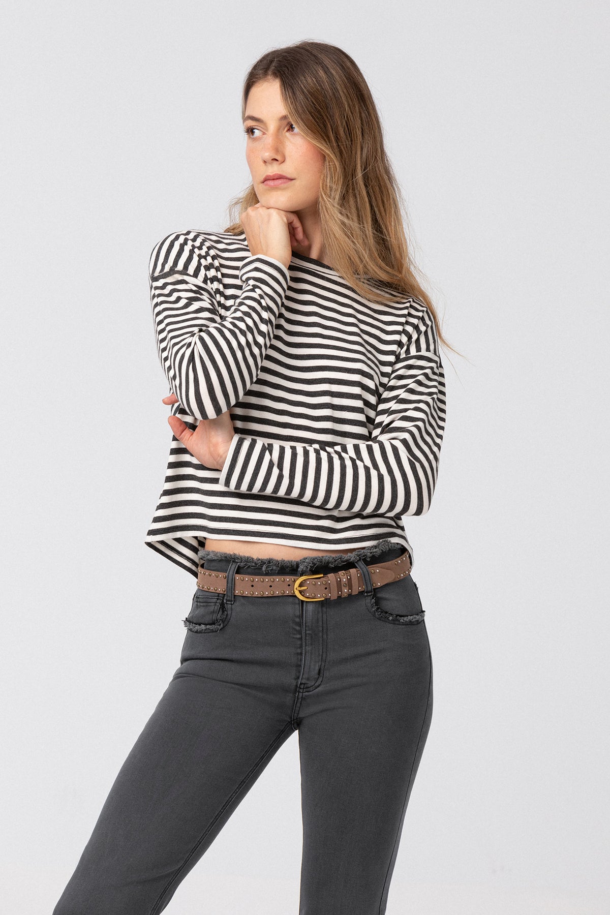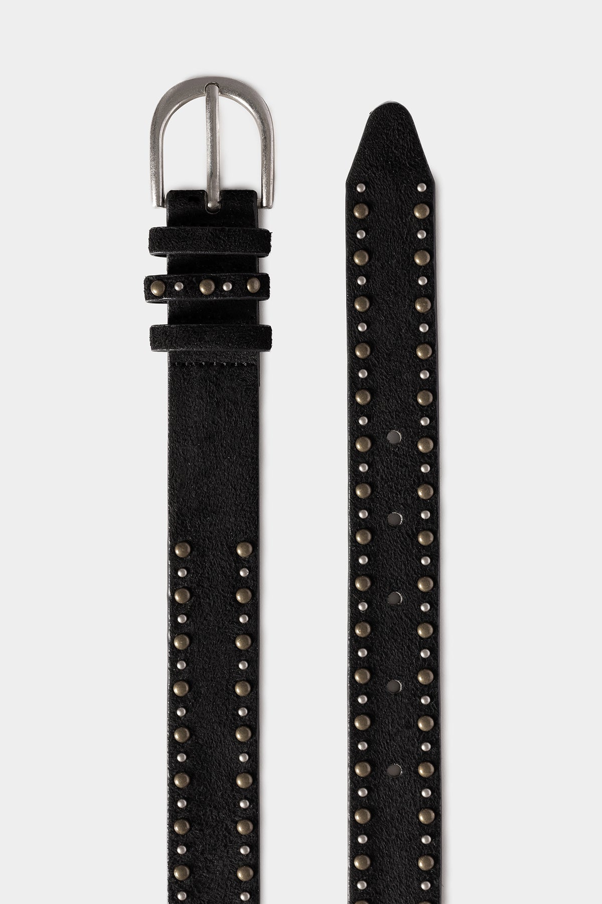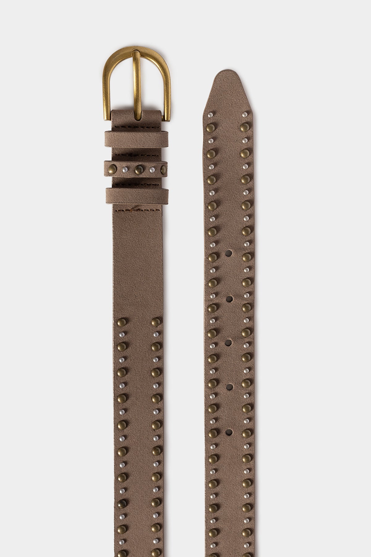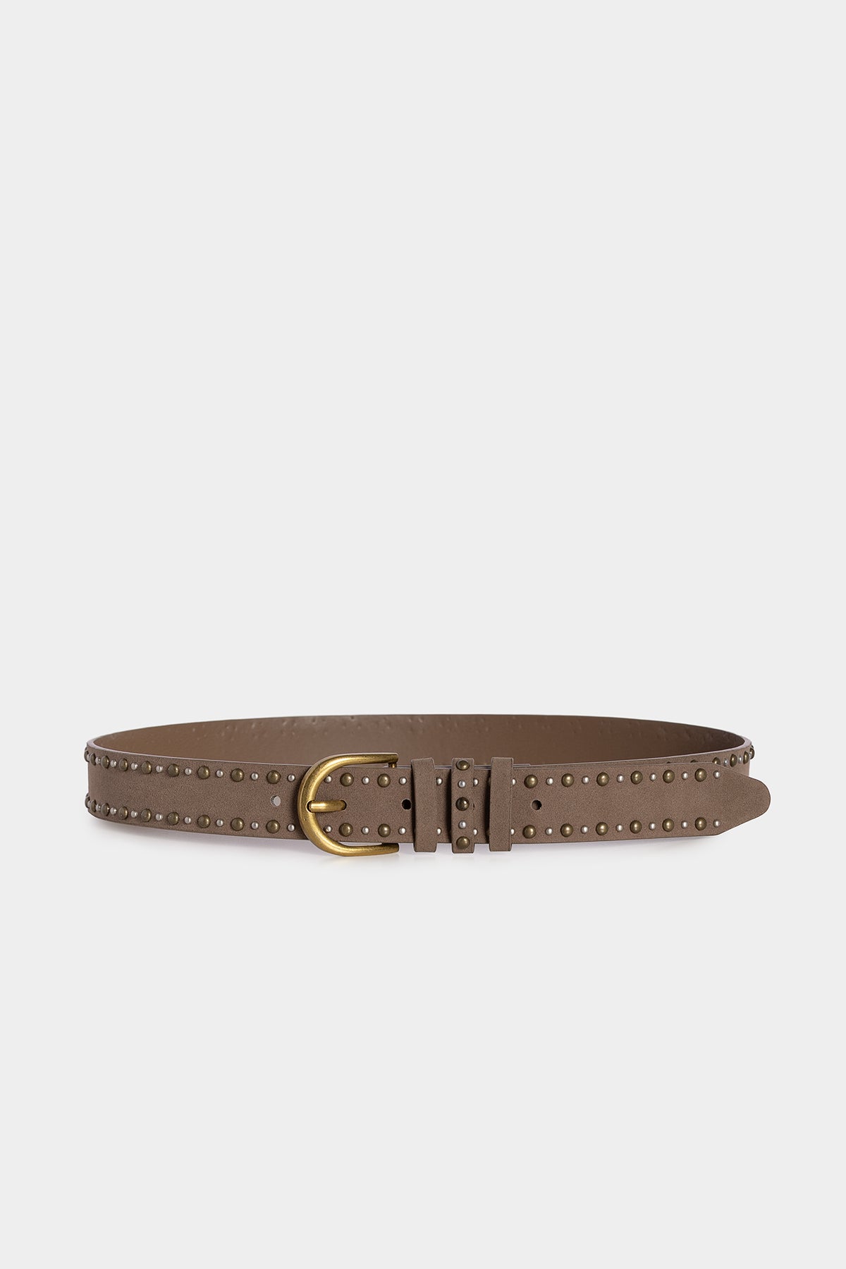 Suede Belt with Stud Detail. Available in brown and black. Metal buckle. Stud detailing in gold and silver tones. The perfect complement to your look!