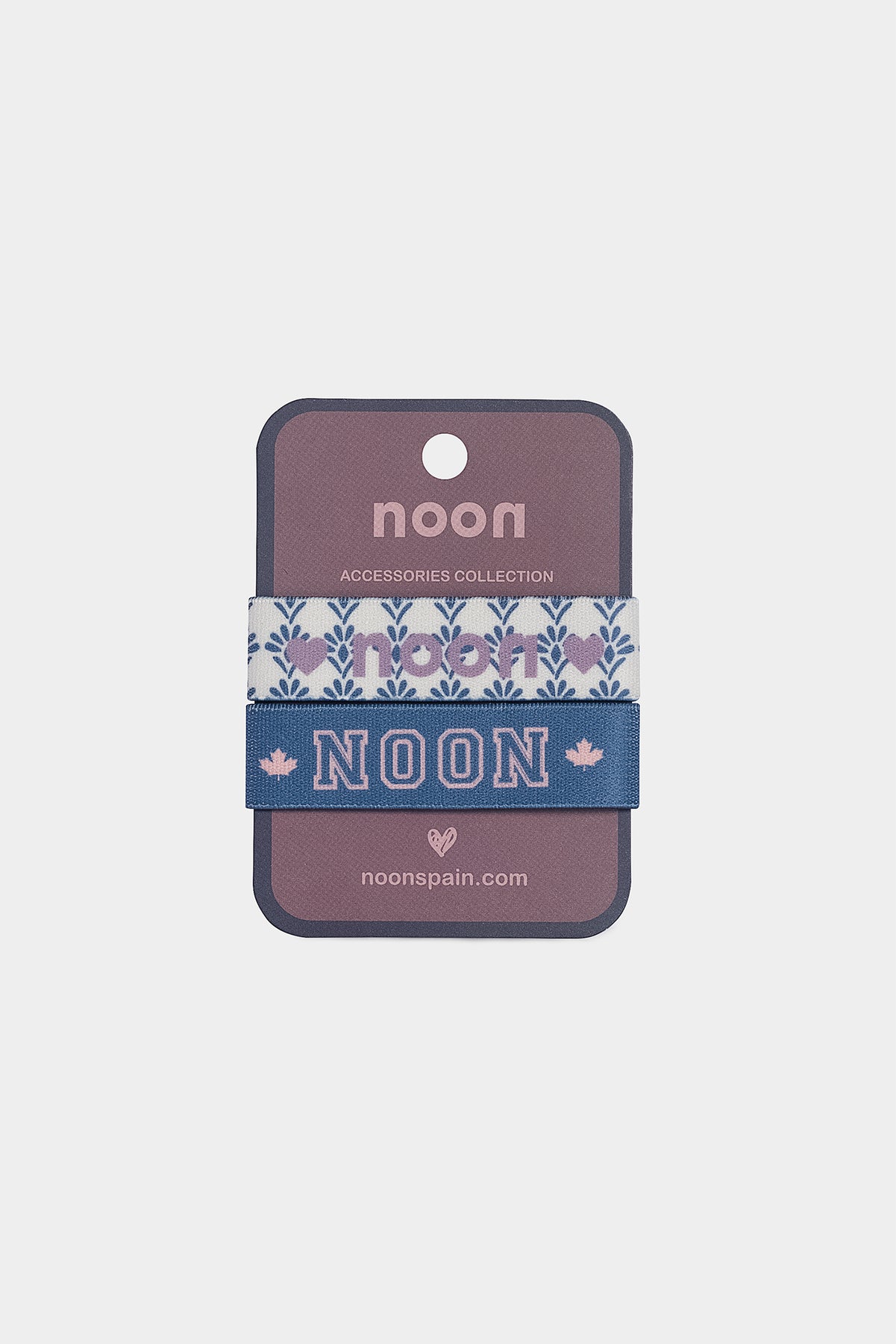 Elastic wristbands with fun prints and logos of Noon. Two different colors for you to choose your favorite. Feel A noon girl wearing our bracelets!