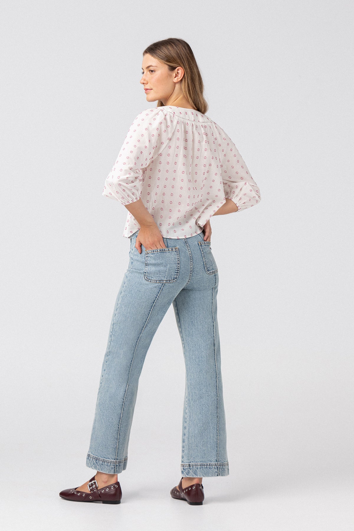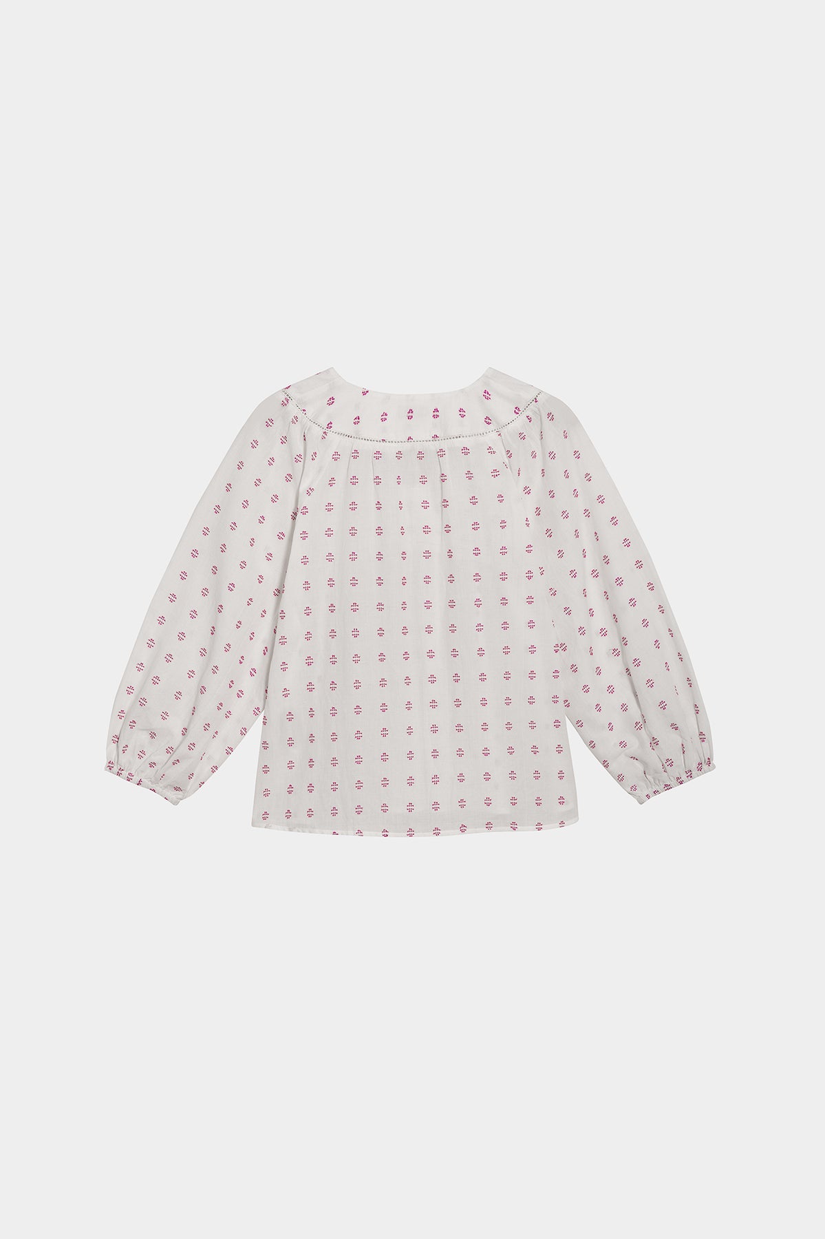 White Yoke Blouse with Embroidered Details. Loose fabric adds movement to the garment. V-neckline and sleeves with elastic cuffs for a perfect fit. It'll become a wardrobe staple this season. Get it now!
