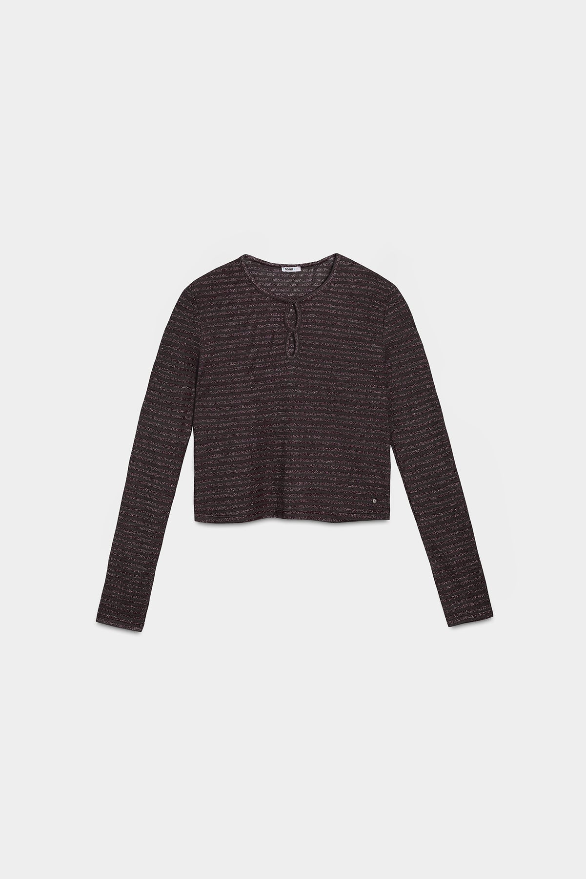 Burgundy long-sleeved striped T-shirt. Slits The front detail adds a youthful touch to the garment. Stretch fabric And lurex that fits perfectly. Get it now!