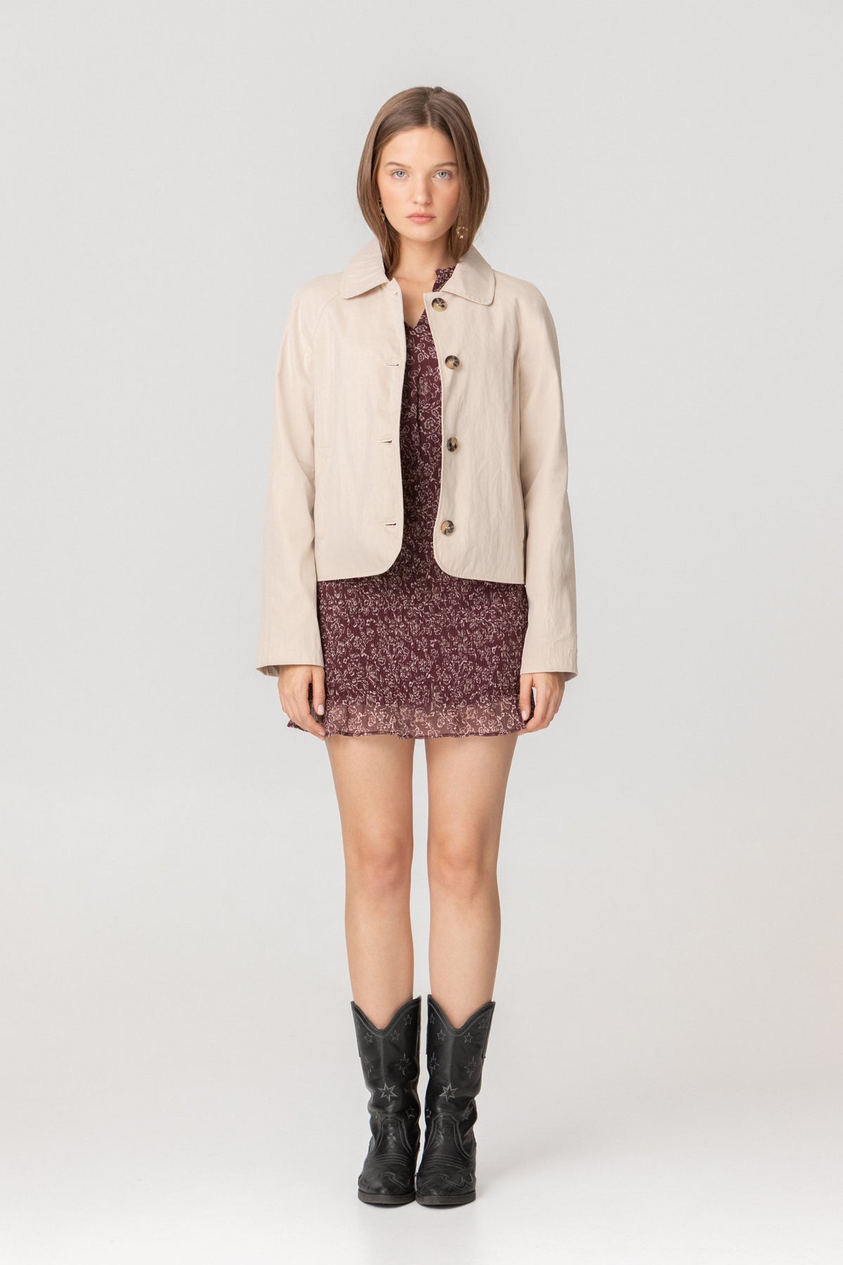 Short Trench Coat with Collar, Beige. Long Sleeves and Front closure with four buttons. Detail of two side pockets. Give your looks a special touch with one of this season's trendiest garments! season!