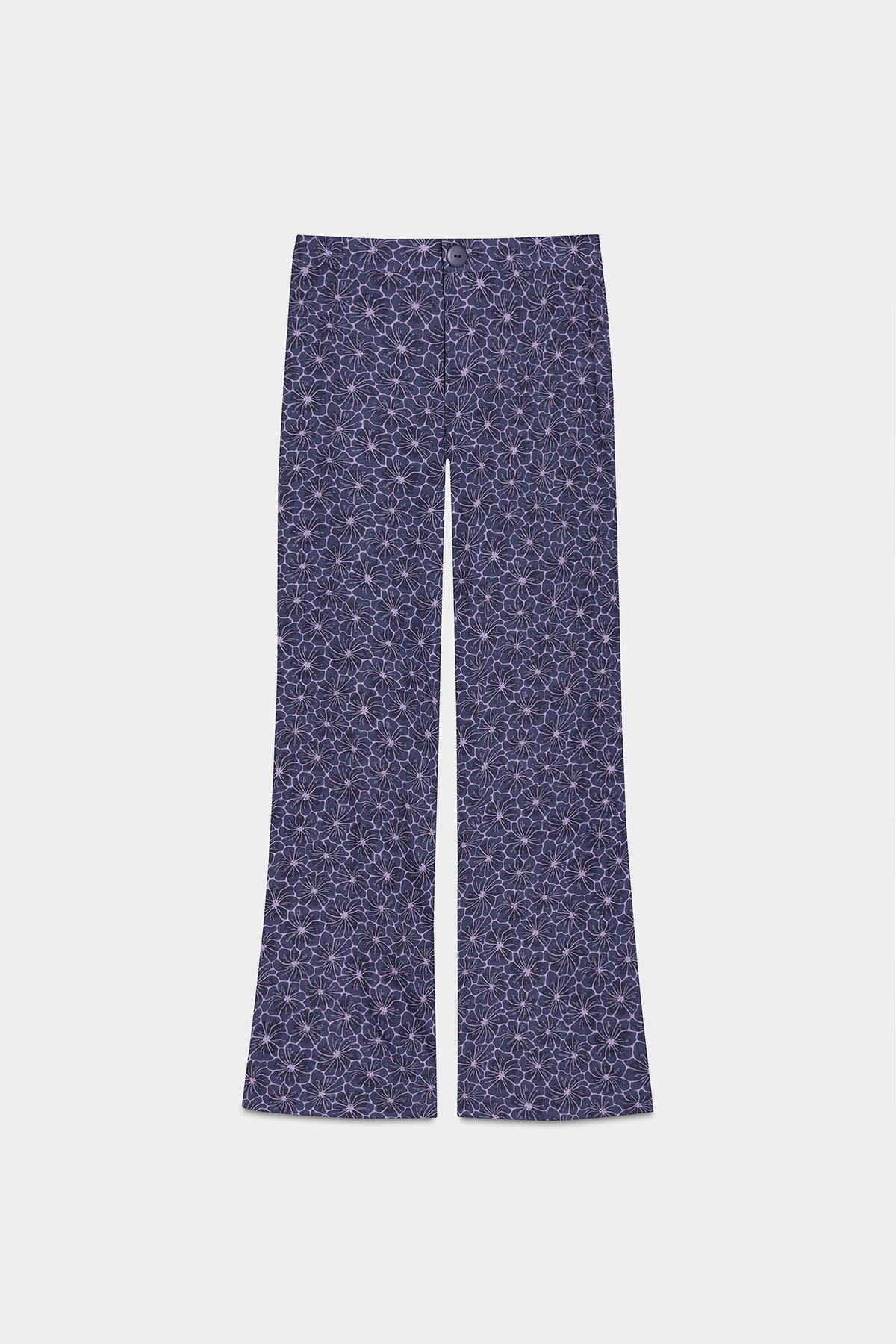 Mid-rise trousers with a blue floral print. Straight cut and low flared. Front button closure and zipper. You can combine it with the matching top for a complete look. Total. Don't miss out!