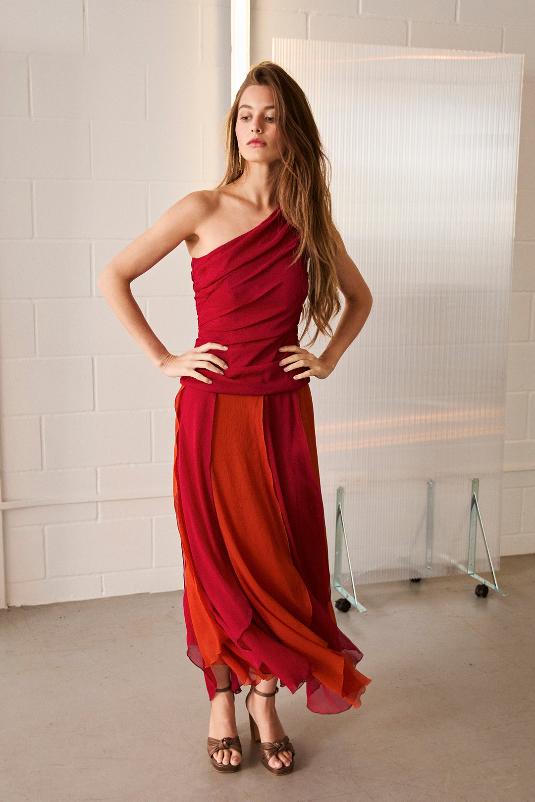 VESTIDO MIDI ASIMETRICO ARIEL
