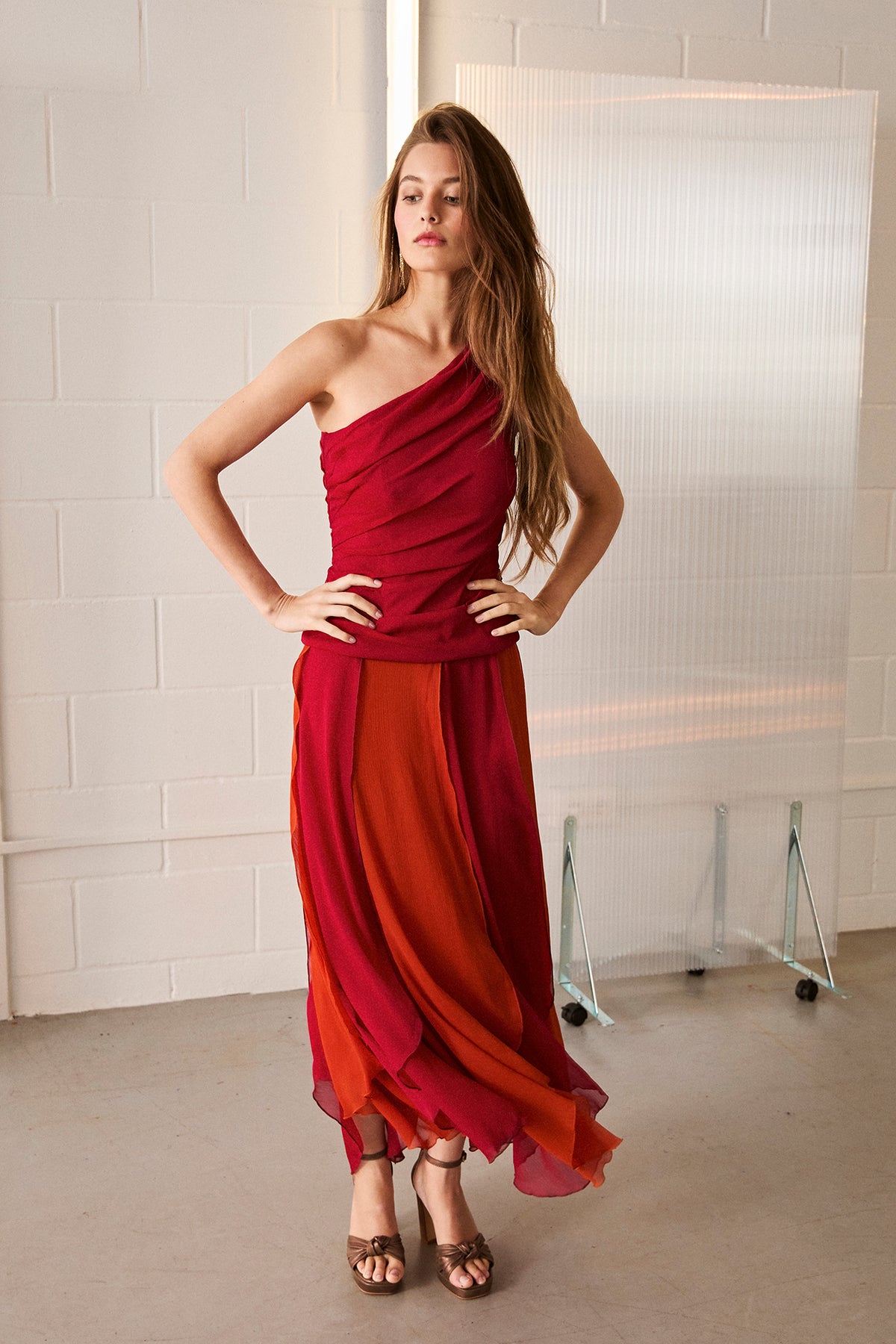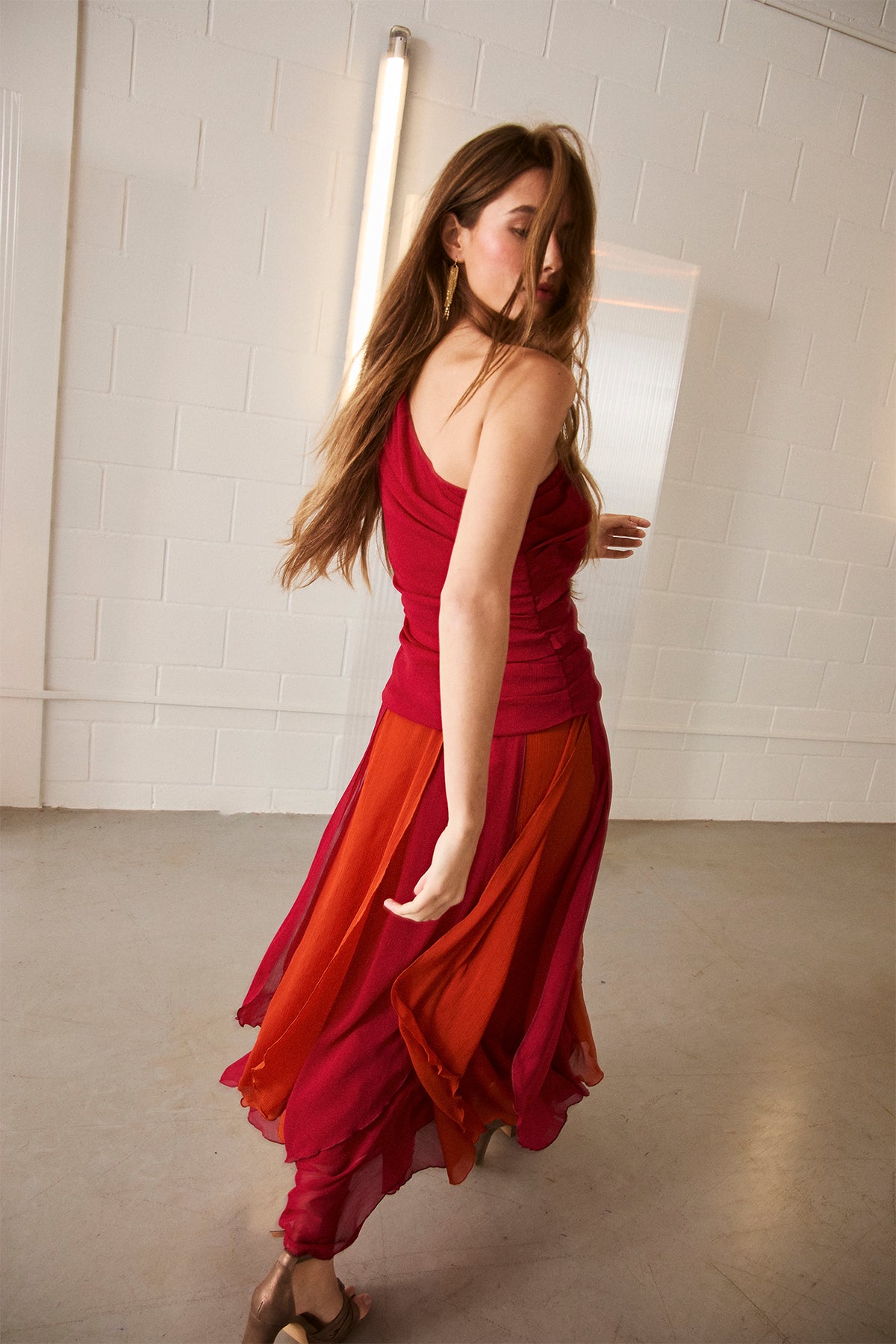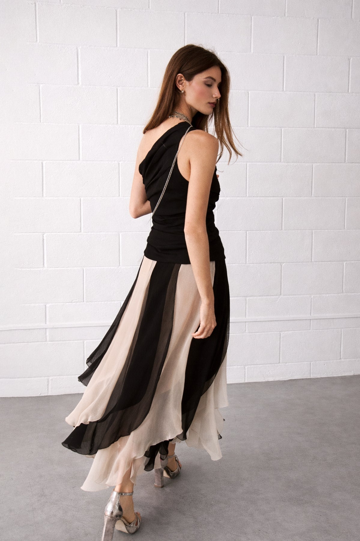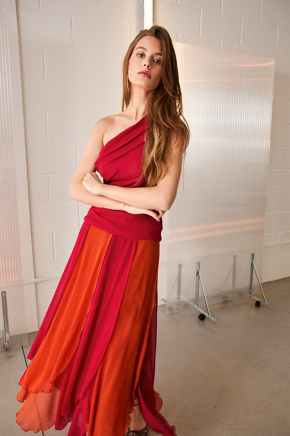 Long skirt with flowing fabric in two color combinations. Available in black and white, or orange and red. Its elegant design and Innovative design flatters the figure and adds movement to the garment. Choose your color Make it your favorite and set the trend at your next event. Pair it with the Carla Top! A matching set for a complete and sophisticated look!