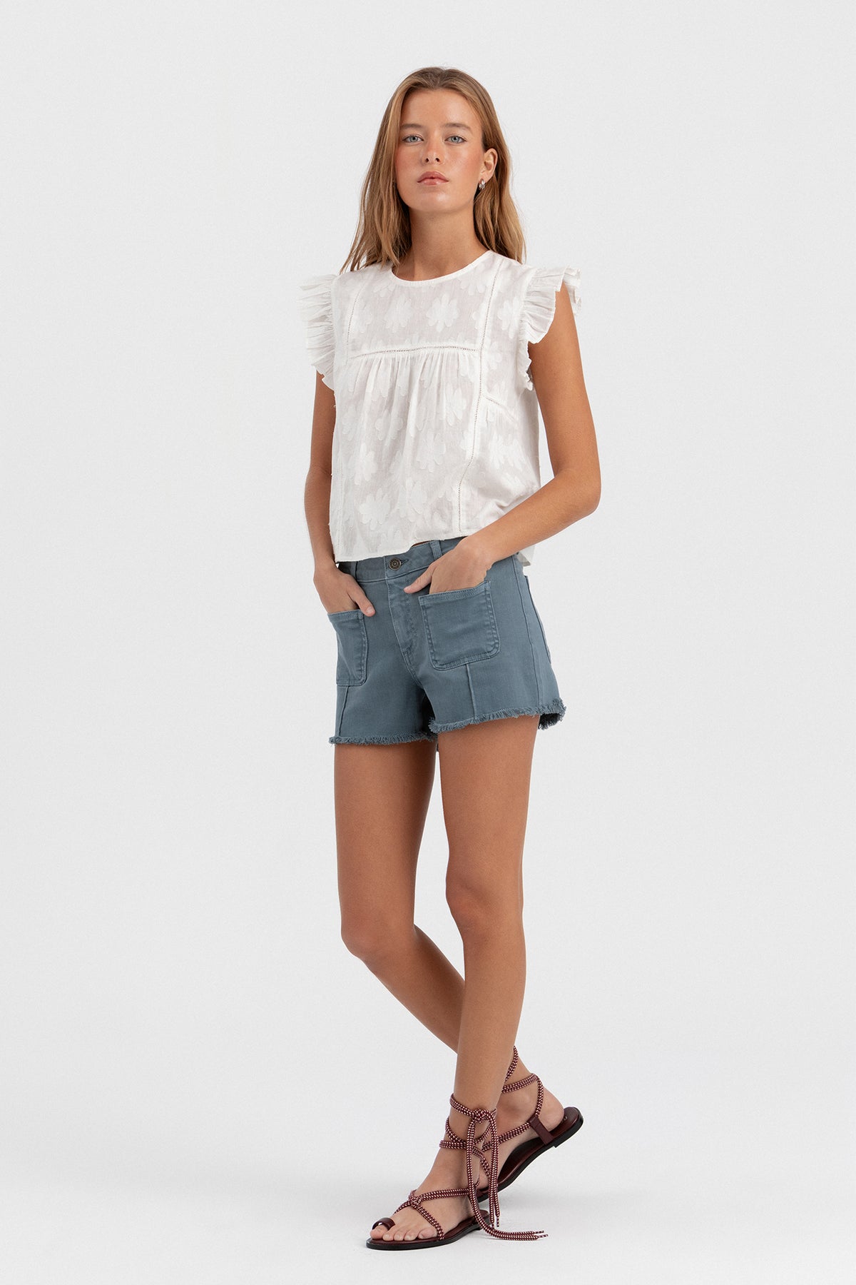 Mid-rise shorts with contrasting front pockets. Perfect for your summer looks. Pair it with any of our Basic t-shirts. The color that can't be missing from your wardrobe is... season!