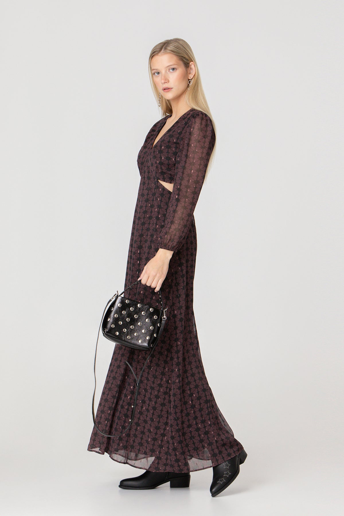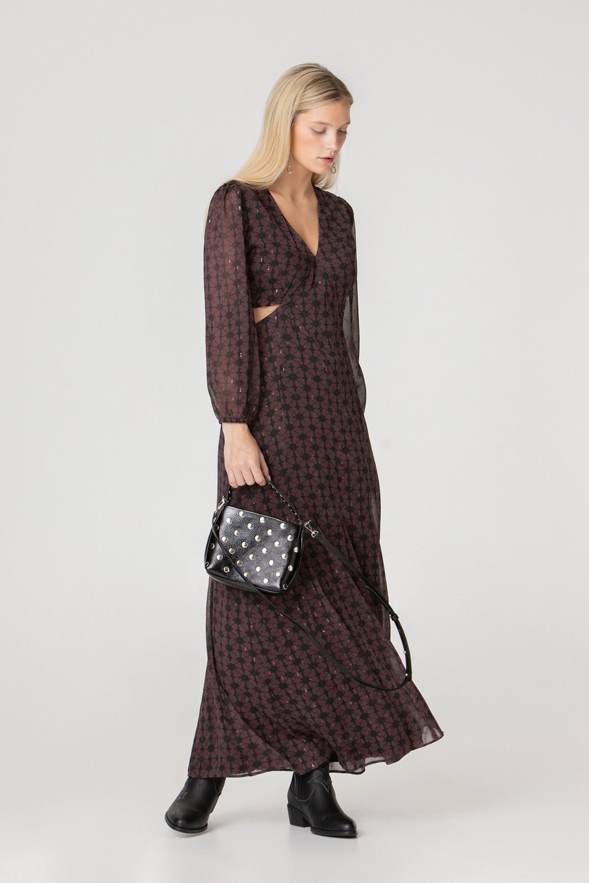 MIDI DRESS WITH V-NECK AND CUT-OUT