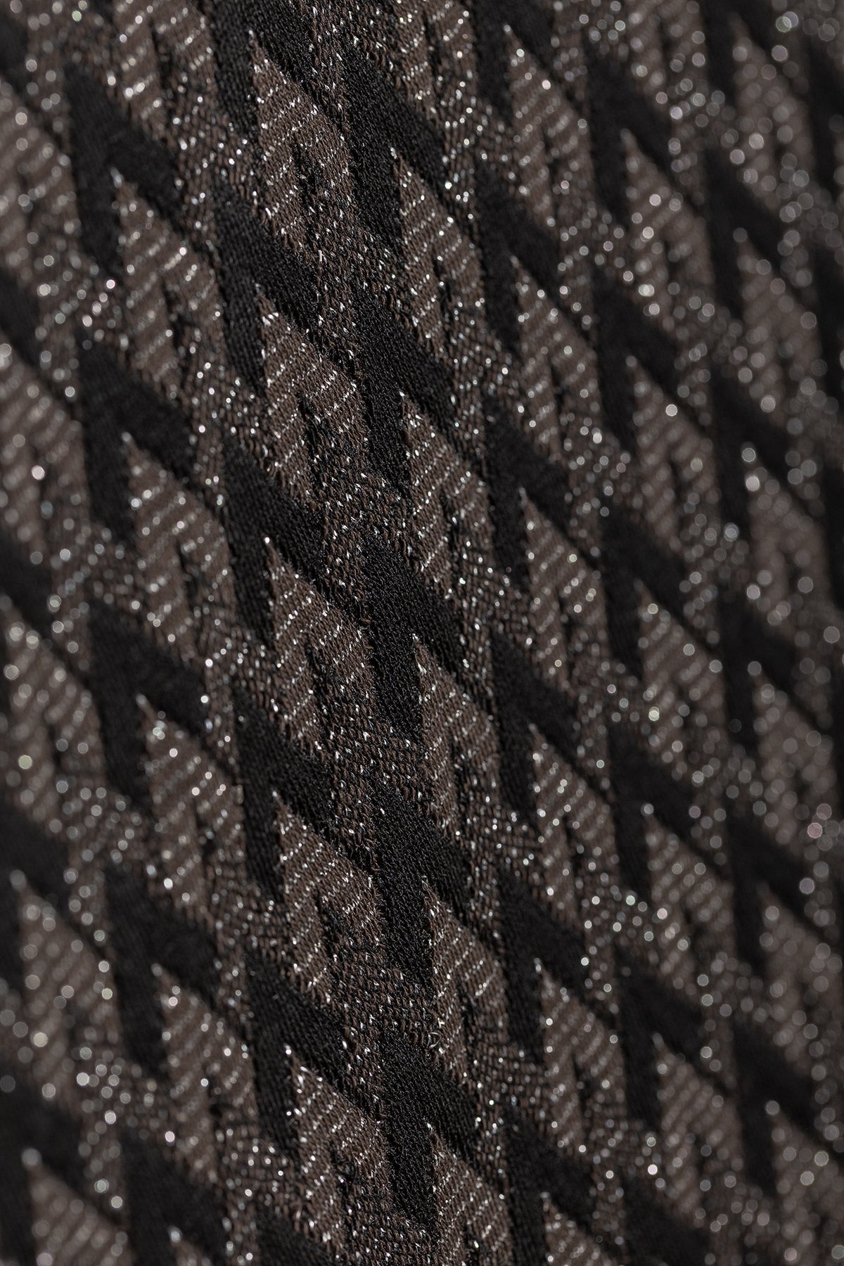 76% polyester 18% viscose 4% lurex 2% elastane.