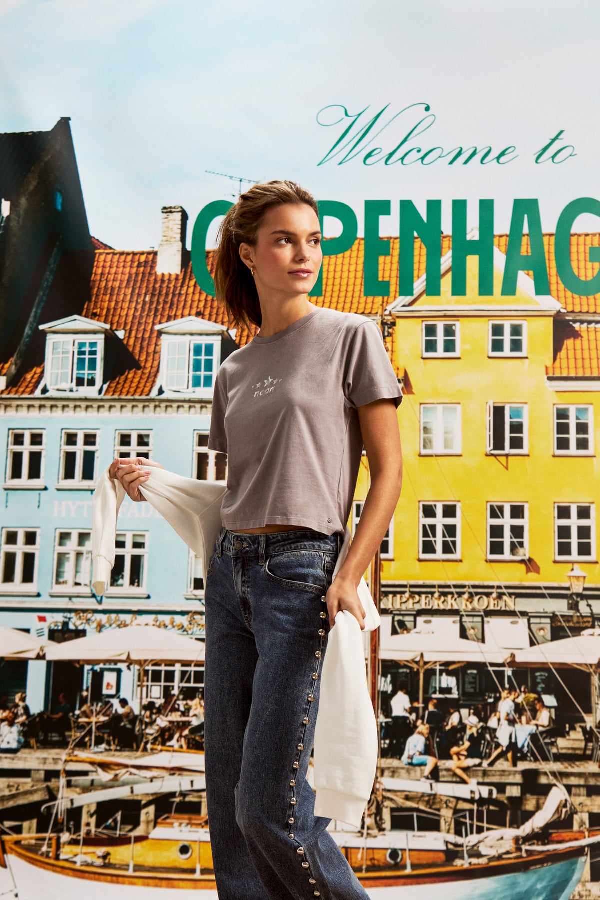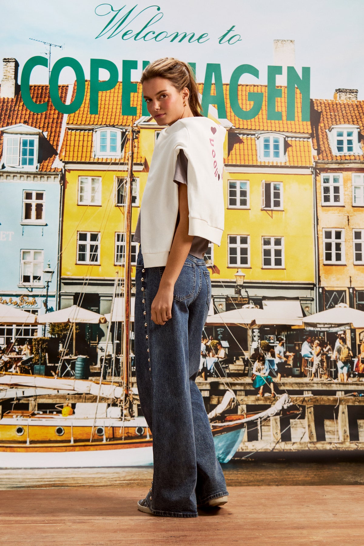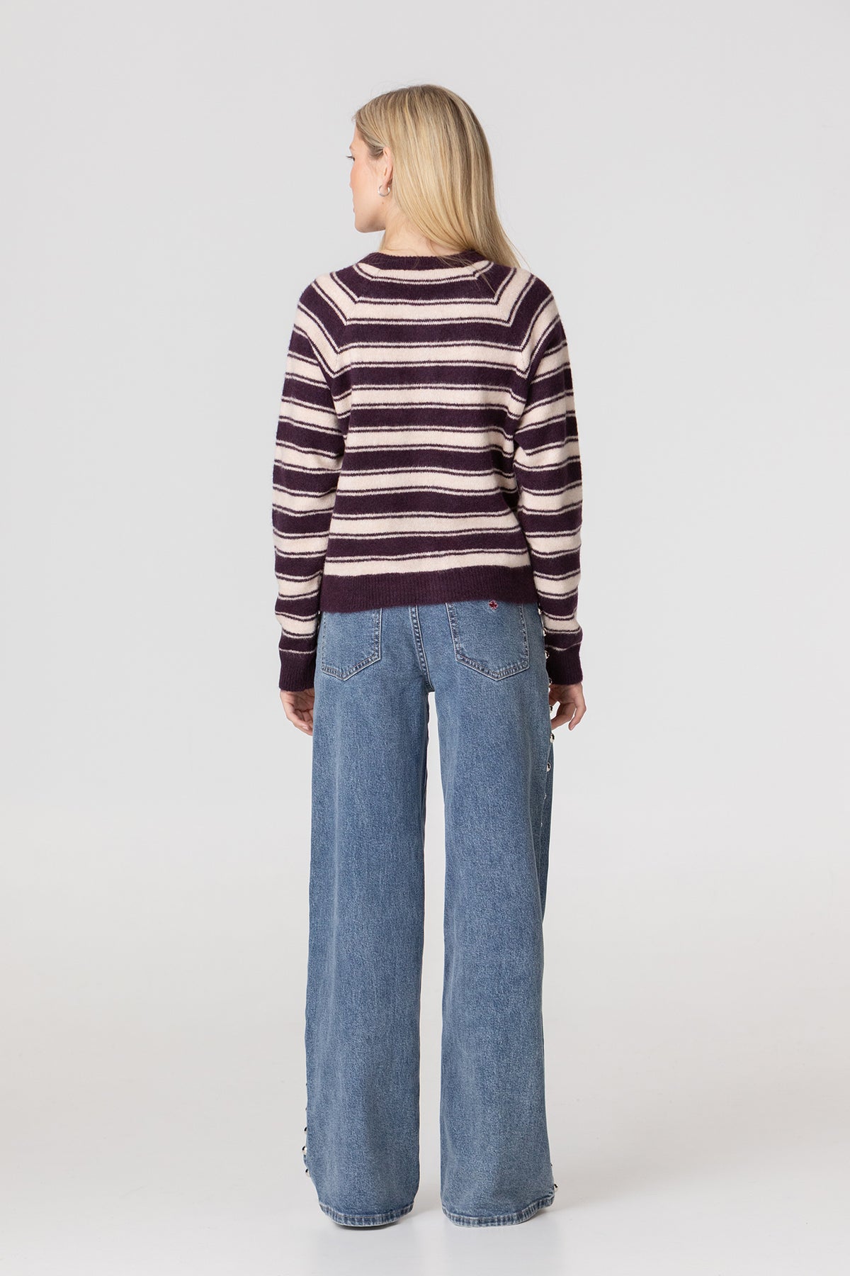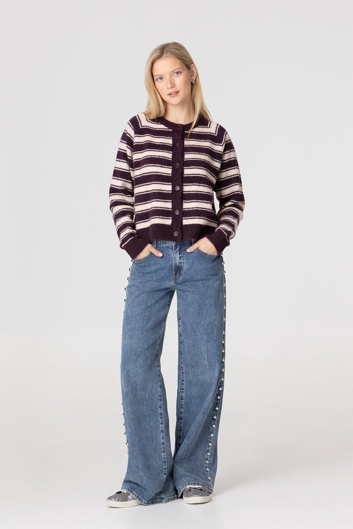 Low-rise, wide-leg straight-leg jeans with studs. Stud detailing on the side. Embroidered noon logo on the back pocket. Perfect for adding a unique touch to your everyday looks and setting trends this season.
