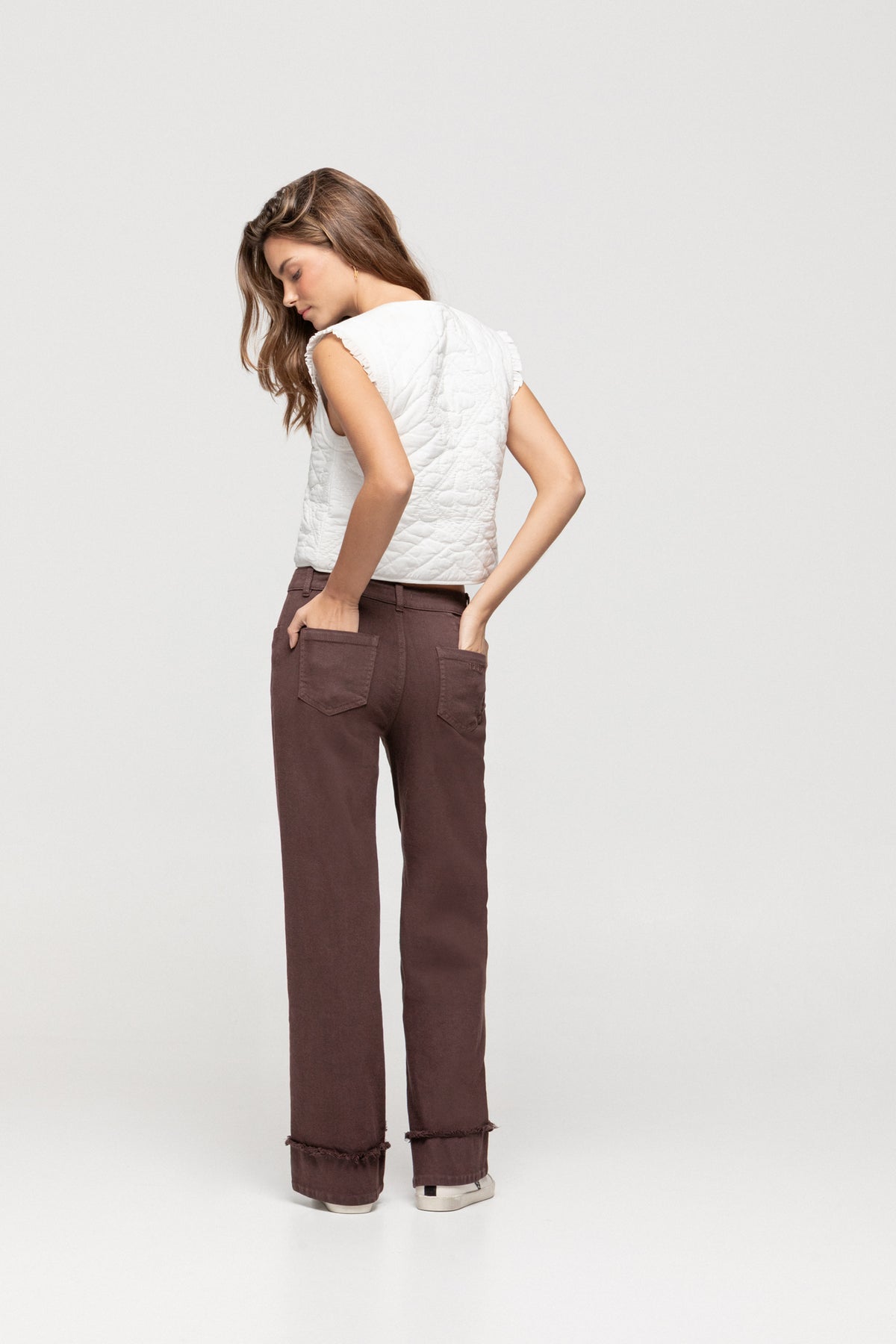 La modelo lleva la talla XS y mide 167 cm.
