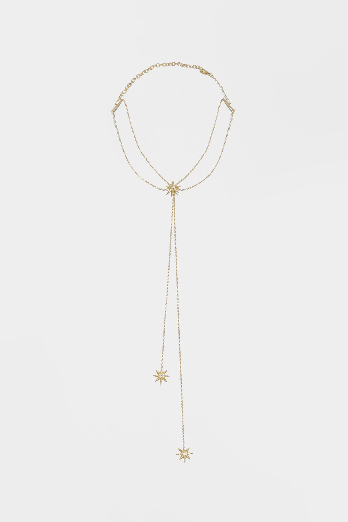 Collar Tipo Choker Dorado. Detalle de estrella en el centro y cadenas largas a juego. ¡Ideal para dar un toque diferente a tus looks del día a día!