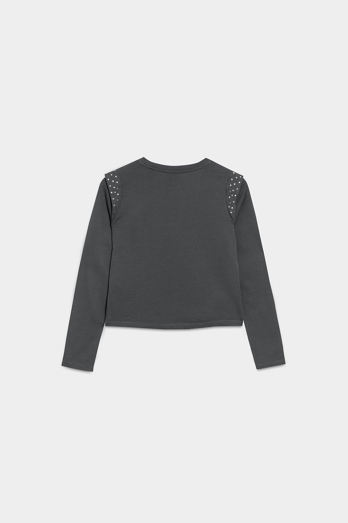 Camiseta de Manga Larga con Tachuelas. Detalle de tachuelas en los hombros que aporta un toque diferente a la prenda. Disponible en dos colores para que elijas tu favorita. ¡Conviértela en un básico de tu armario esta temporada!