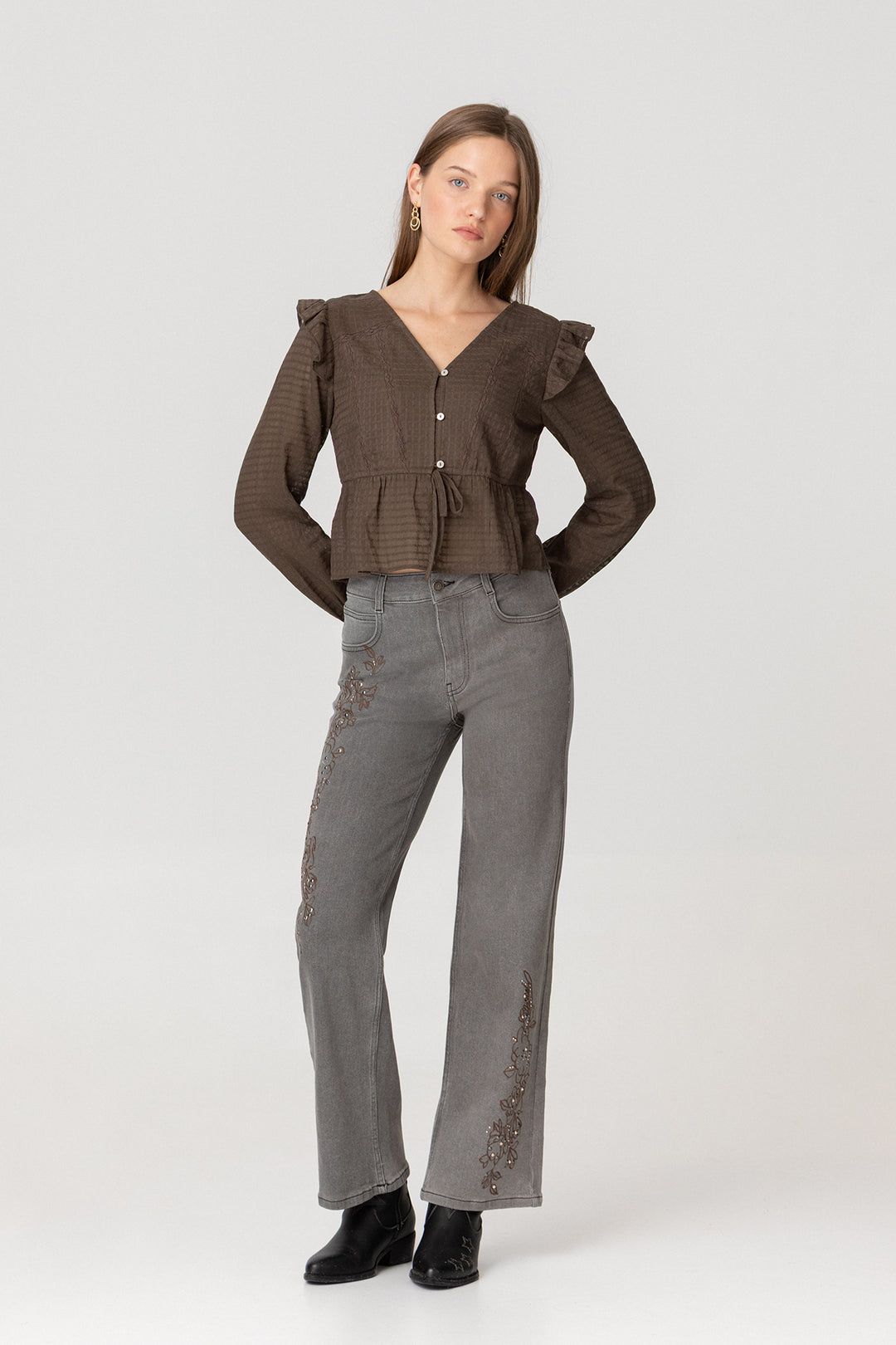CALÇAS DE ganga BORDADAS COM FLORES E TACHAS