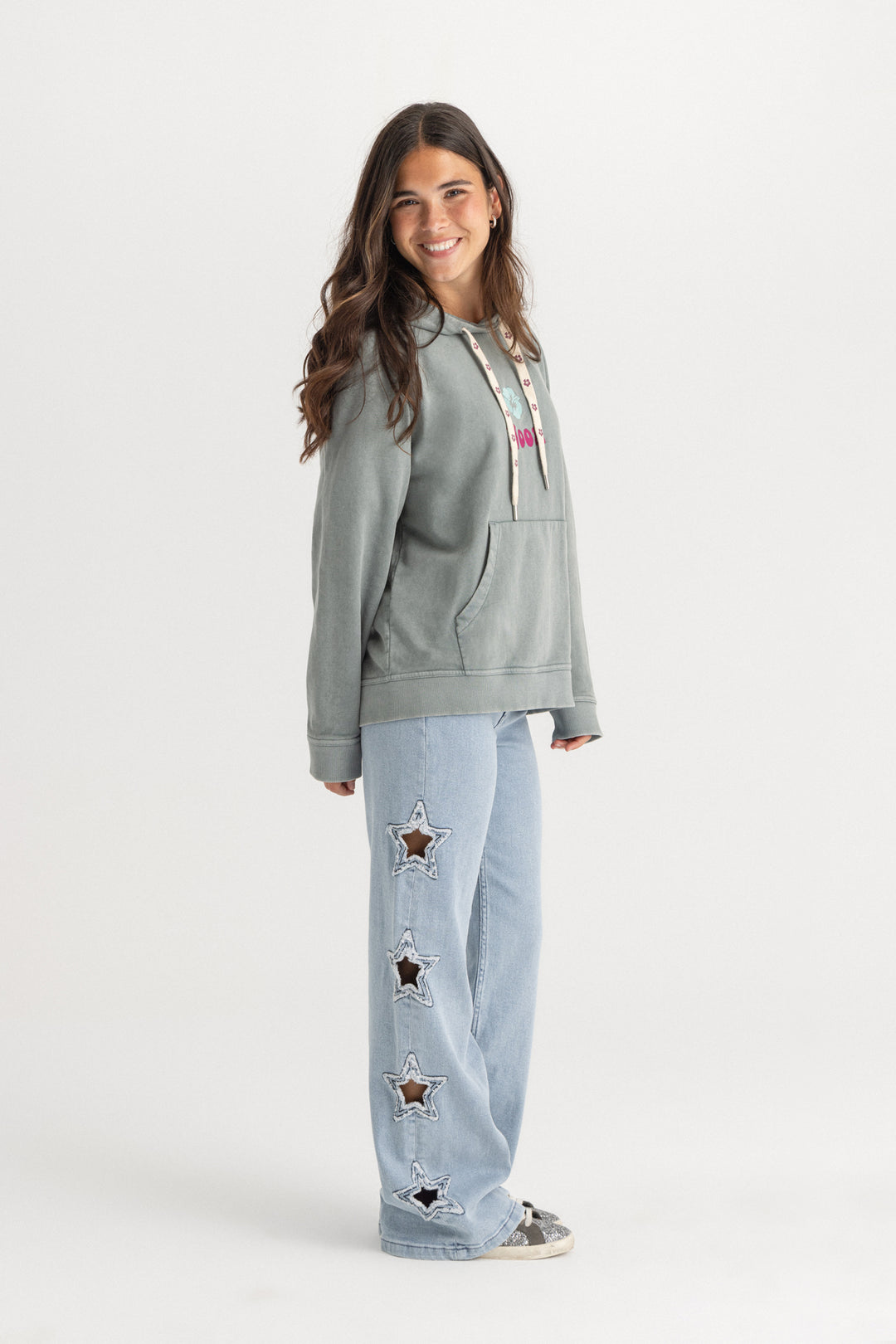 CALÇA DE GANGUE CORTADA A LASER COM ESTRELAS